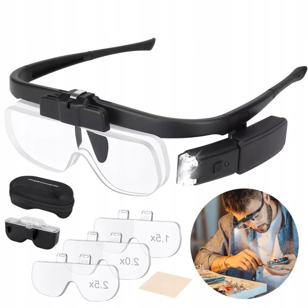 ✅3 сменных линзы: 1,5x, 2x, 2,5x, 3,5x, 4x, 4,5x увеличение, оптические линзы устойчивы к царапинам класса 5H, более износостойкие и долговечные. Отныне попрощайтесь с щурением и наслаждайтесь кристально чистым зрением крупным планом!
