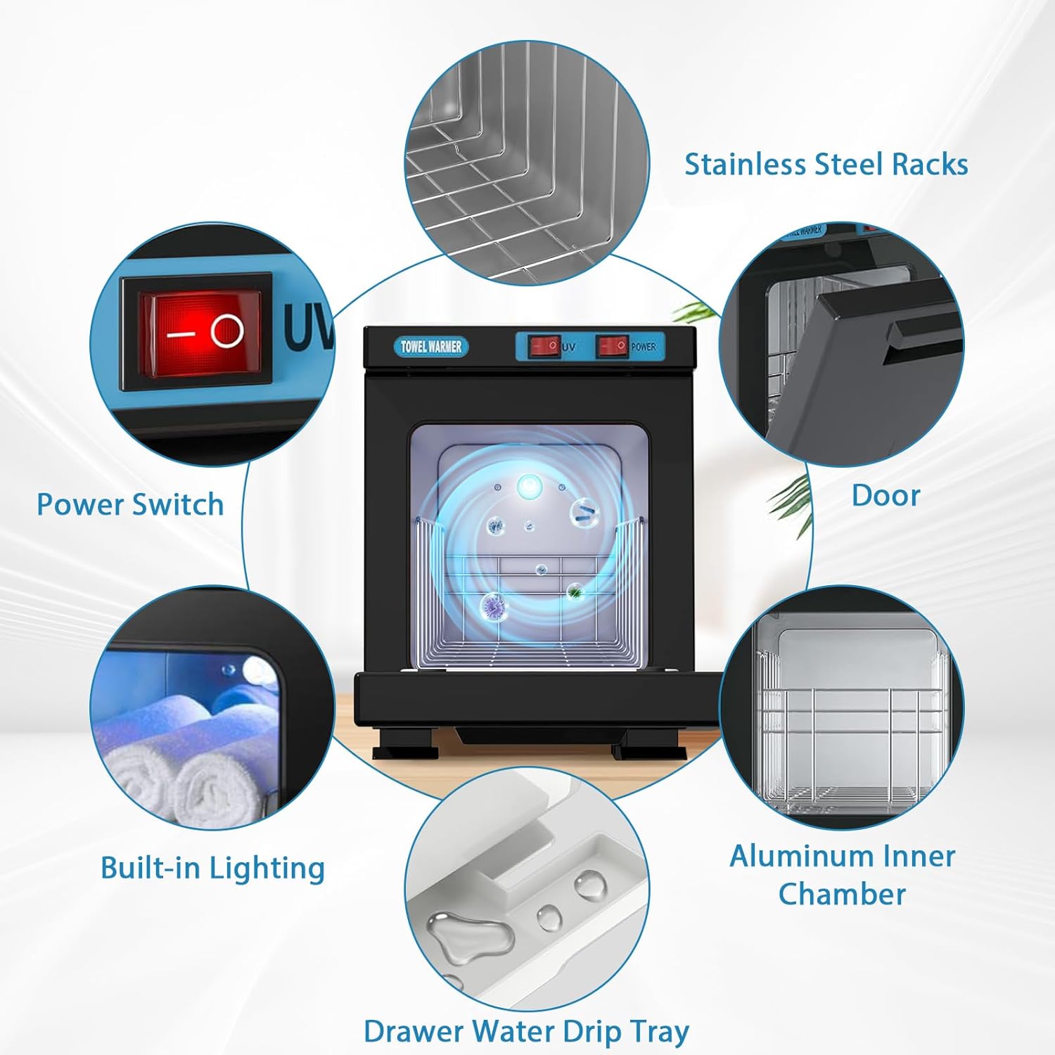 - 【Premium Performance】 Стерилизатор для теплых полотенец. Измеряет 21,4 х 26,4 х 29,7 см, а внутренний размер составляет 16,3 х 19 x 18 см. Он изготовлен из прочного покрытия ABS и оснащен ультрафиолетовой лампой и резиновой прокладкой внутри на месте после отопления. Стерильное состояние, чтобы обеспечить безопасность вас и вашей семьи
