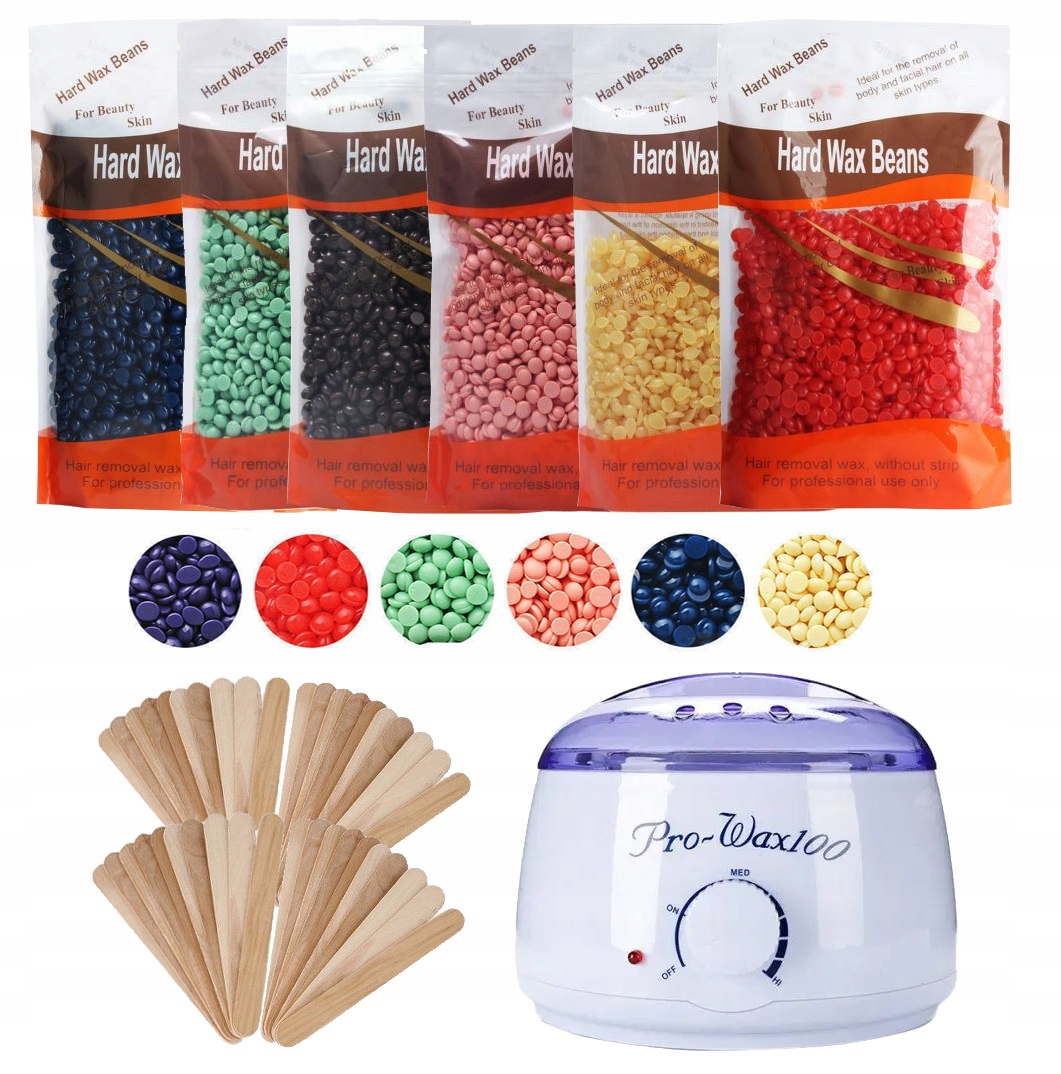 НАБОР ВОСКОВЫХ НАГРЕВАТЕЛЕЙ + 6x ТВЕРДЫЙ ВОСК 600 г + 100 стержней