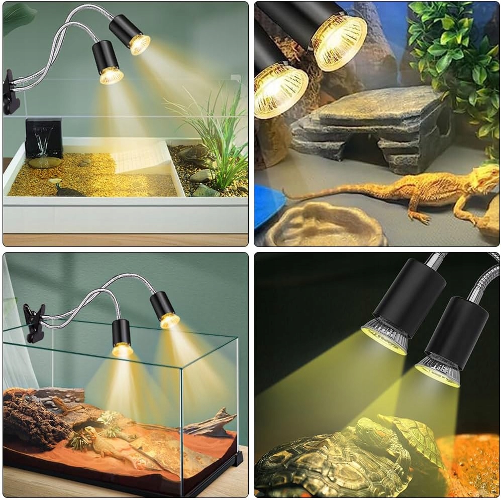 🐢【Имитирует естественный солнечный свет】 Эта нагревательная лампа для рептилий с двумя головками — лучший выбор для разведения рептилий. Он похож на свою естественную среду, где подвергается большему воздействию прямых солнечных лучей. Идеально подходит для большинства рептилий, способствующих здоровому развитию костей рептилий.