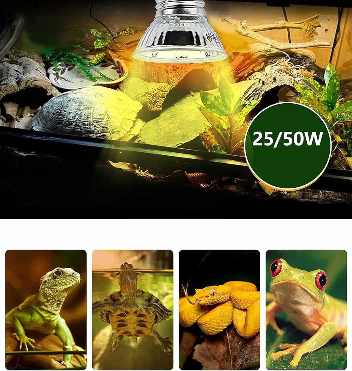 НАГРЕВАТЕЛЬНАЯ ЛАМПА ДЛЯ ЧЕРЕПАХ, 2 ЛАМПЫ UVA UVB, 25/50 Вт НАГРЕВАТЕЛЬНАЯ ЛАМПОЧКА ДЛЯ РЕПТИЛИЙ, E27