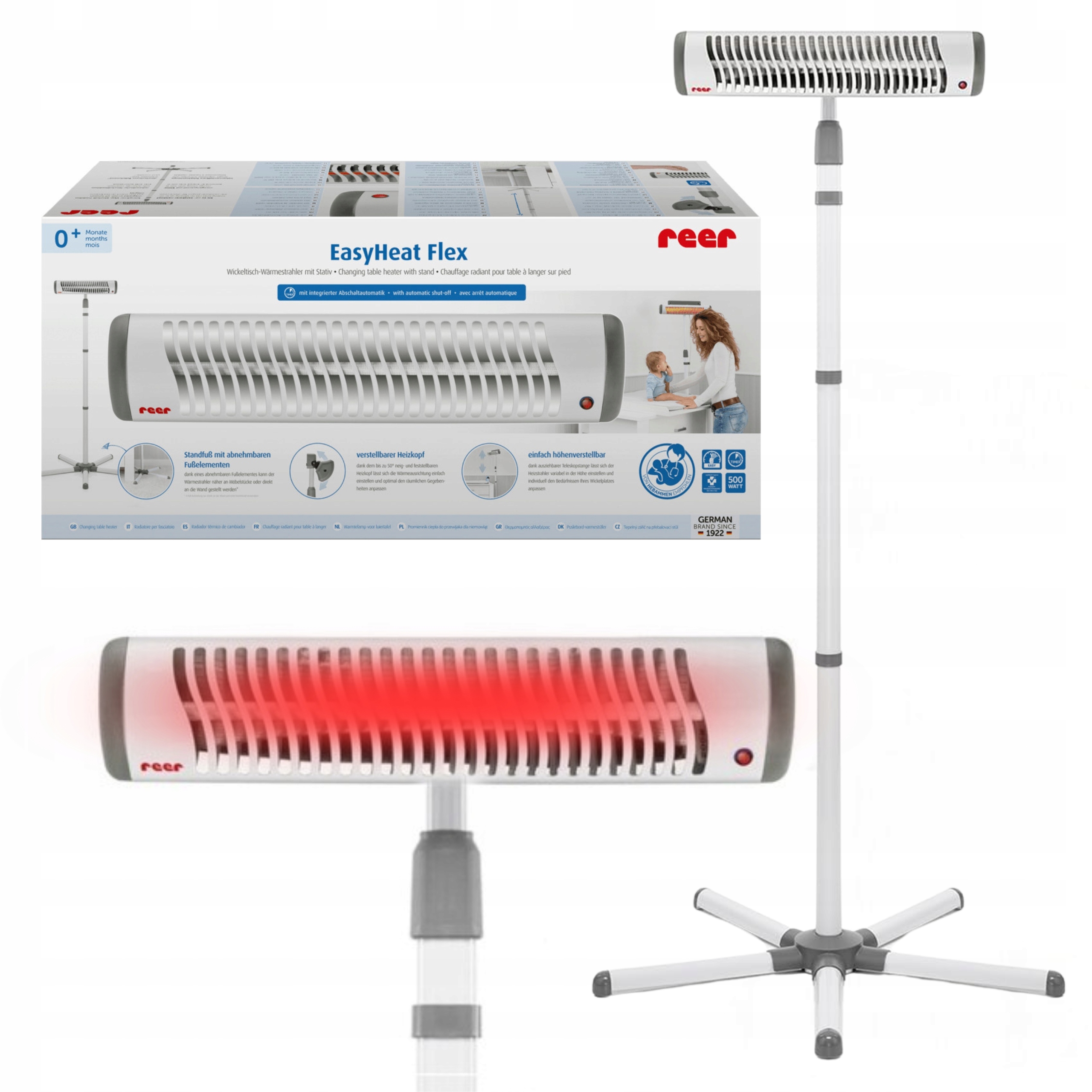Пеленальный столик Reer 19050 EasyHeat Flex со встроенным автоматическим отключением. Предотвращает переохлаждение и обеспечивает немедленное тепло в месте использования.
