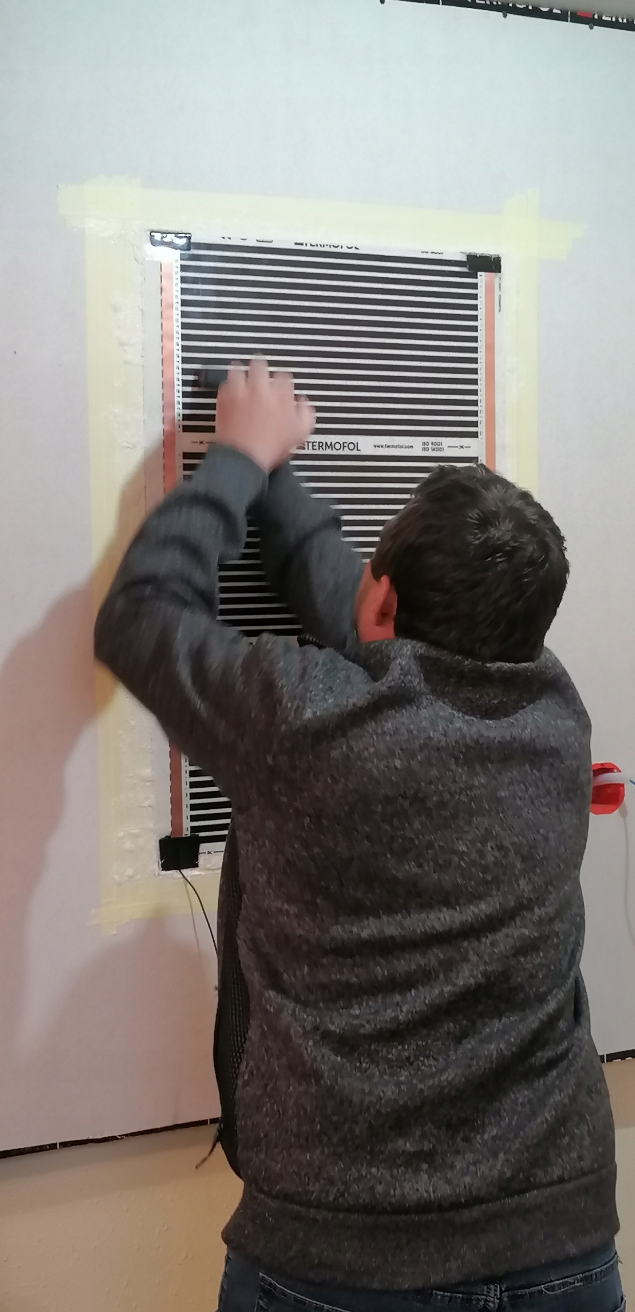 - через 3 минуты поместите нагревательную фольгу на стену и плотно прижмите