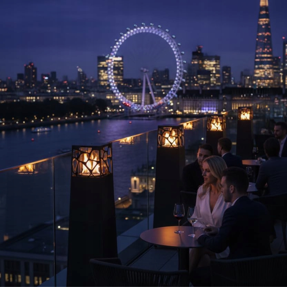 Газовый камин Pyramid — это сочетание роскошного дизайна, инновационных технологий и высочайшего качества изготовления. Разработанный с вниманием к каждой детали, он является не только эффективным источником тепла, но и стильным украшением, которое придаст неповторимый характер любой террасе, саду или коммерческому помещению.