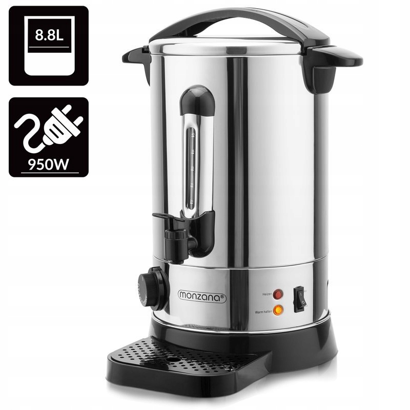 Шкала уровня наполнения показывает, сколько чашек доступно в любой момент времени. С помощью термостата вы можете точно определить, насколько теплым/горячим должен быть ваш напиток (30-110 градусов). Нагреватель имеет крышку из нержавеющей стали с запирающим устройством. Наполнять скороварку легко благодаря термоизолированной ручке на крышке. Очень широкое дно горшка обеспечивает высокий уровень устойчивости. Развлекайтесь горячим напитком в холодное время года.