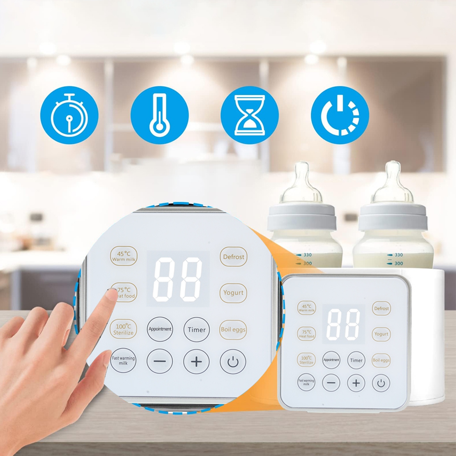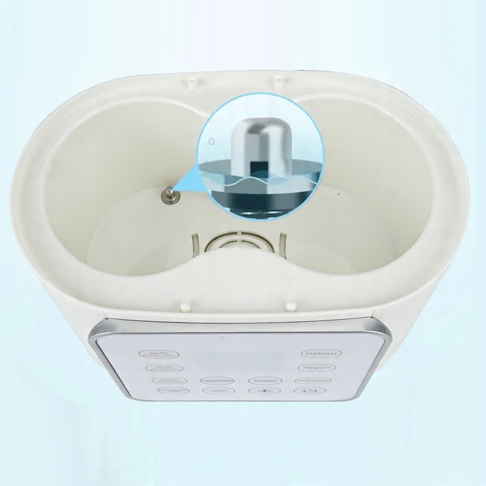 - Многофункциональный подогреватель бутылочек для младенцев с функцией быстрого нагрева молока, подогрева продуктов, стерилизации, разморозки, йогурта, яиц вкрутую, таймера, настройки встреч, круглосуточного поддержания тепла, регулировки температуры и функции автоматического отключения.