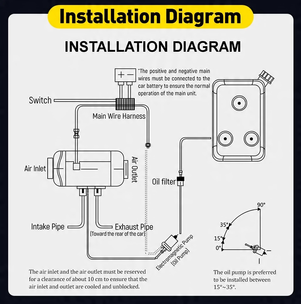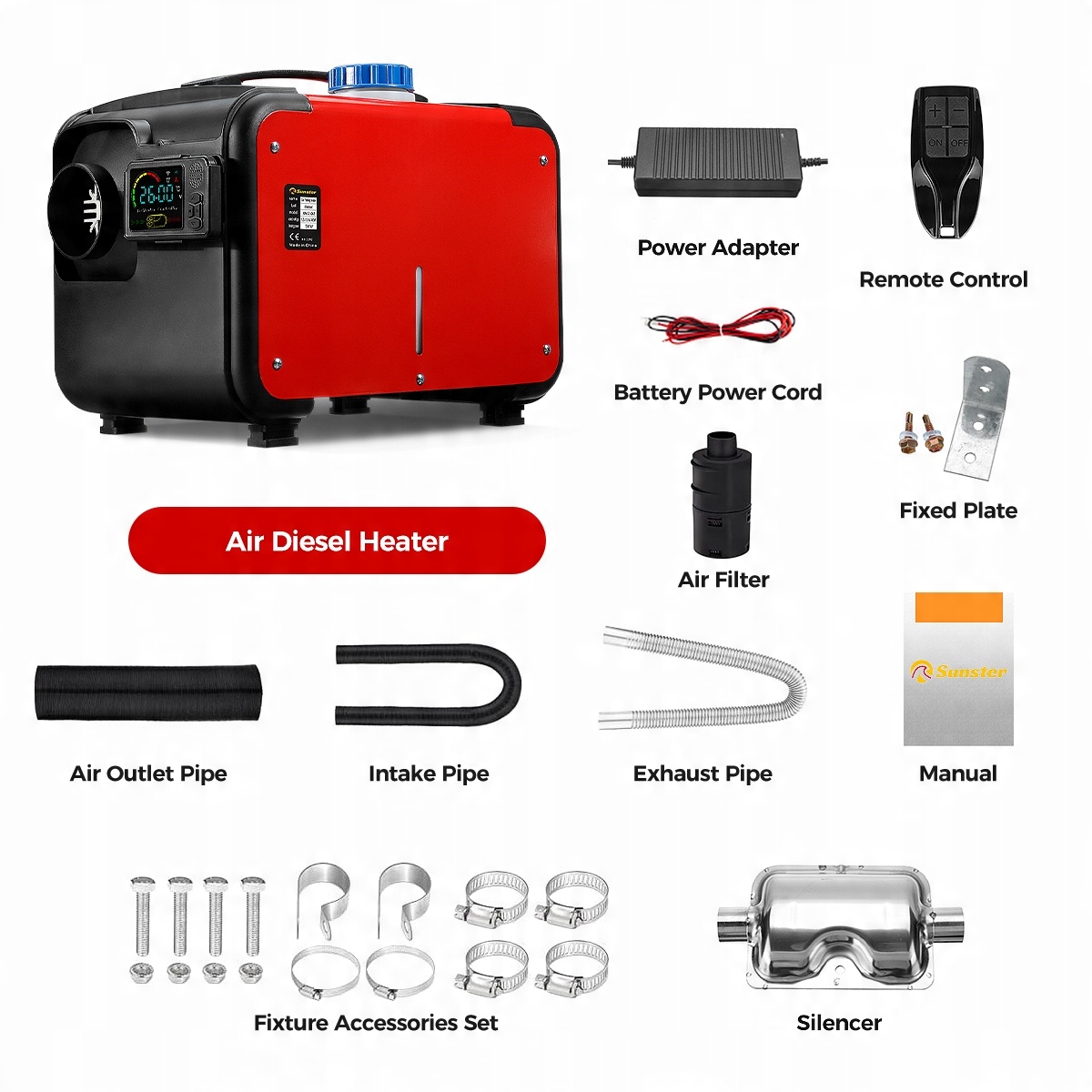 Простота эксплуатации. Пульт дистанционного управления и ЖК-монитор обеспечивают быстрое и интуитивно понятное управление, позволяя осуществлять предварительный нагрев и удаленную регулировку температуры. Функция таймера позволяет вам устанавливать время запуска и остановки, что полезно для незанятых транспортных средств.