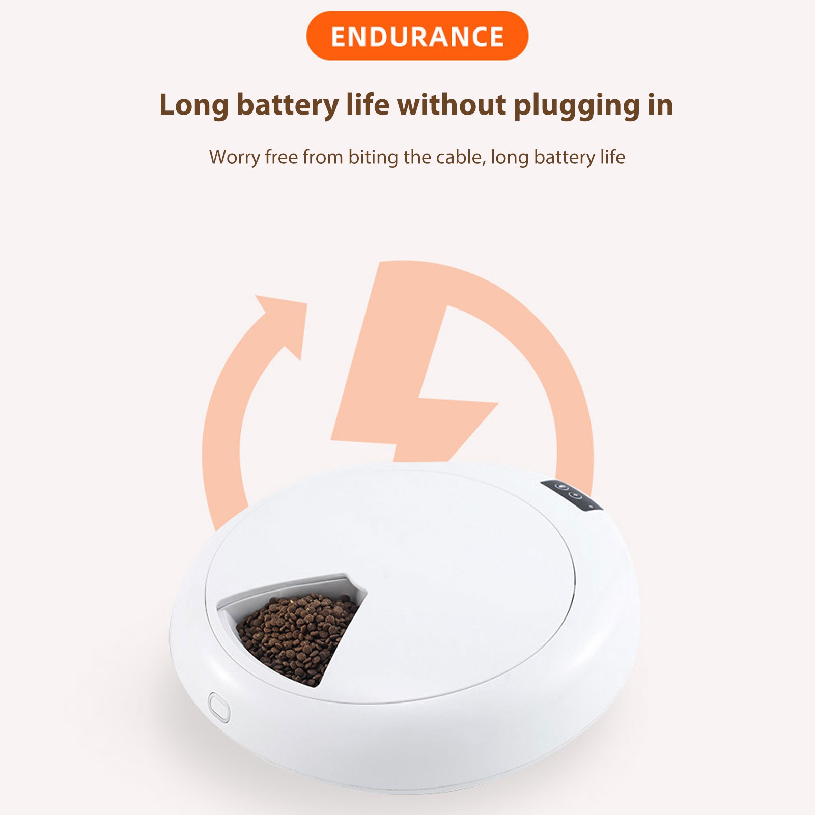5. Конструкция большой вместимости: эта кормушка для домашних животных с дистанционным управлением, оснащенная шестью отдельными отделениями для еды емкостью 8 унций каждый, сводит к минимуму необходимость частых пополнений, что делает ее удобной для владельцев домашних животных, когда они находятся вдали от дома.
