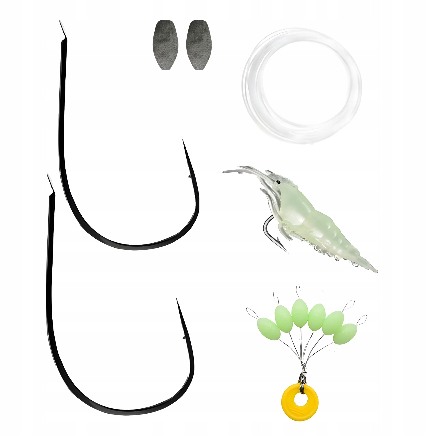 line, 2x hook, bait, 2x egg (weights), 6x float, 2x clips