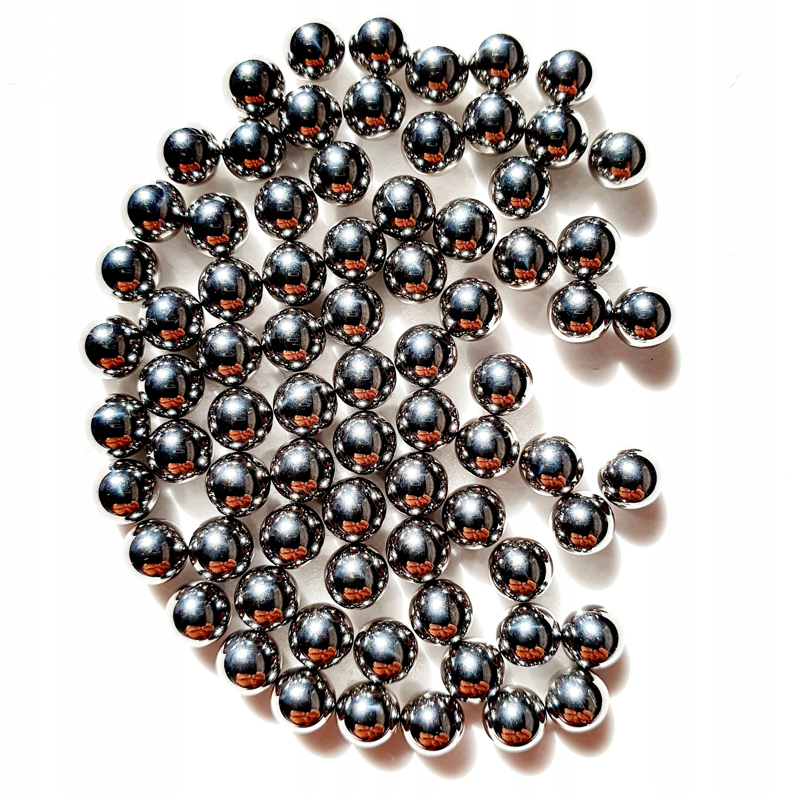 Шарики стальные диаметром 4,8 мм (допуск 0,1 мм) и массой 0,45 г/шт., твердостью более 50 HRC, хромированная поверхность, идеальная точность.
