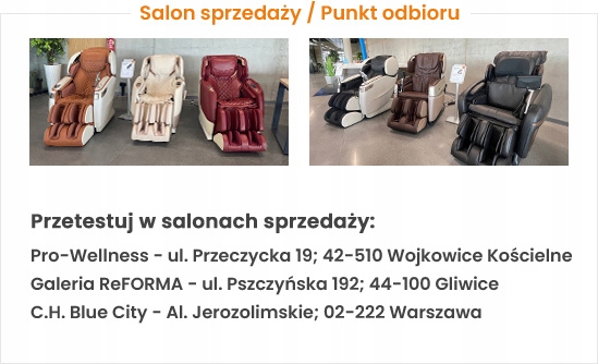 Массажные кресла доставляем заказчику собственным транспортом. Средний срок доставки составляет 3 дня. Во время доставки мы всегда проводим бесплатное обучение использованию кресла и прилагаем руководство пользователя на польском языке. Транспорт и обучение в Польше всегда бесплатны. Наши сотрудники приносят и устанавливают кресло в указанное вами место и выполняют первую операцию.