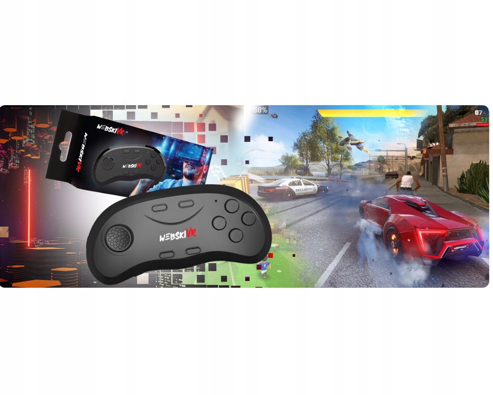 В комплект входит беспроводной геймпад, который подключается к телефону по технологии Bluetooth. Осматривайтесь вокруг в очках VR и перемещайтесь по виртуальному миру с помощью геймпада.