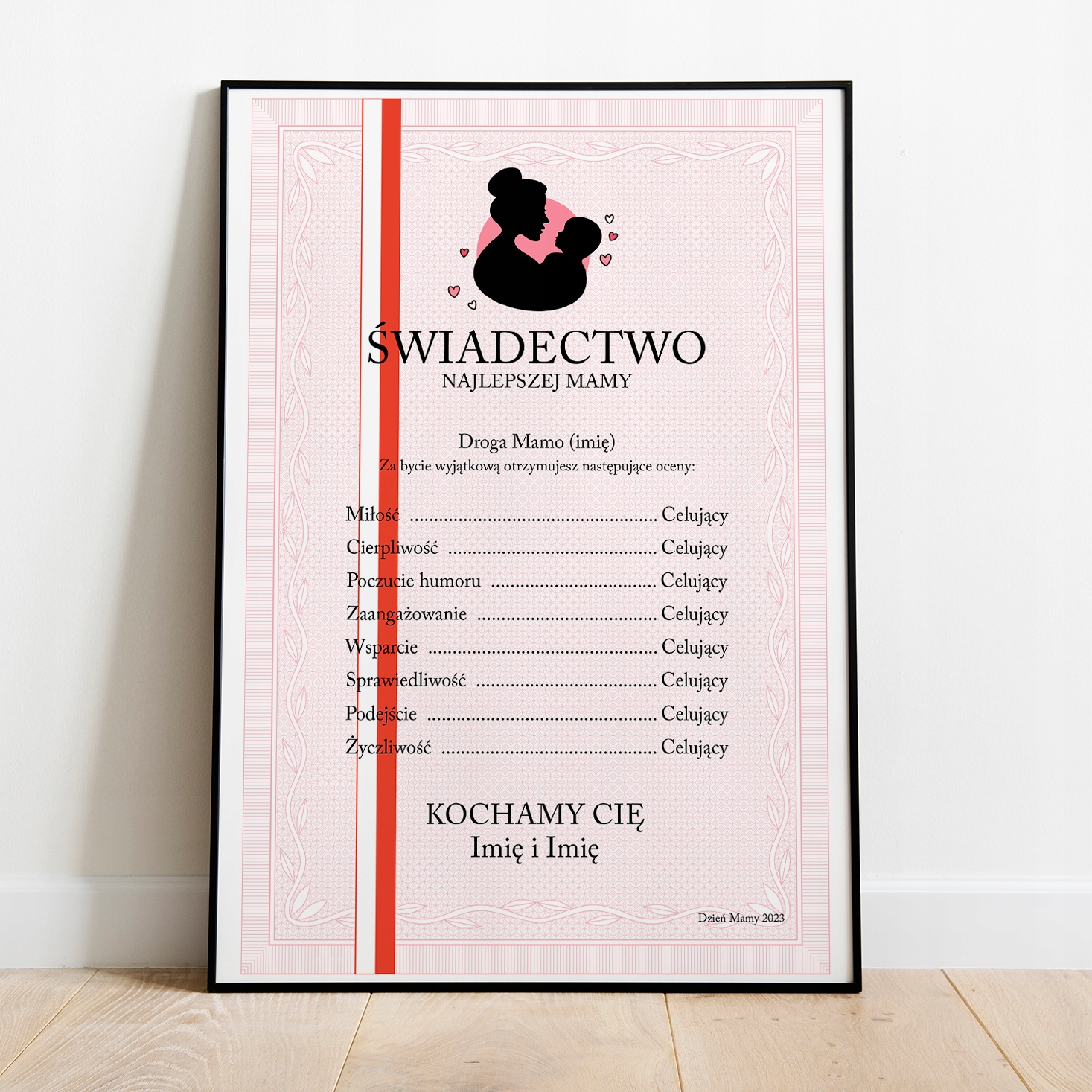 ✨ Уникальный подарок для мамы! Именный сертификат с бело-красной полосой для лучшей Мамы! Высоко качественный уникальный подарок формата А4. Изготовлено на оригинальной высоко качестве плакатной бумаге. Сертификат можно оформить в элегантную рамку, которую можно повесить на стену. персонализированный подарок, приготовленный таким образом, станет выражением нашей любви и великим b> сувенир для любимой мамочки.