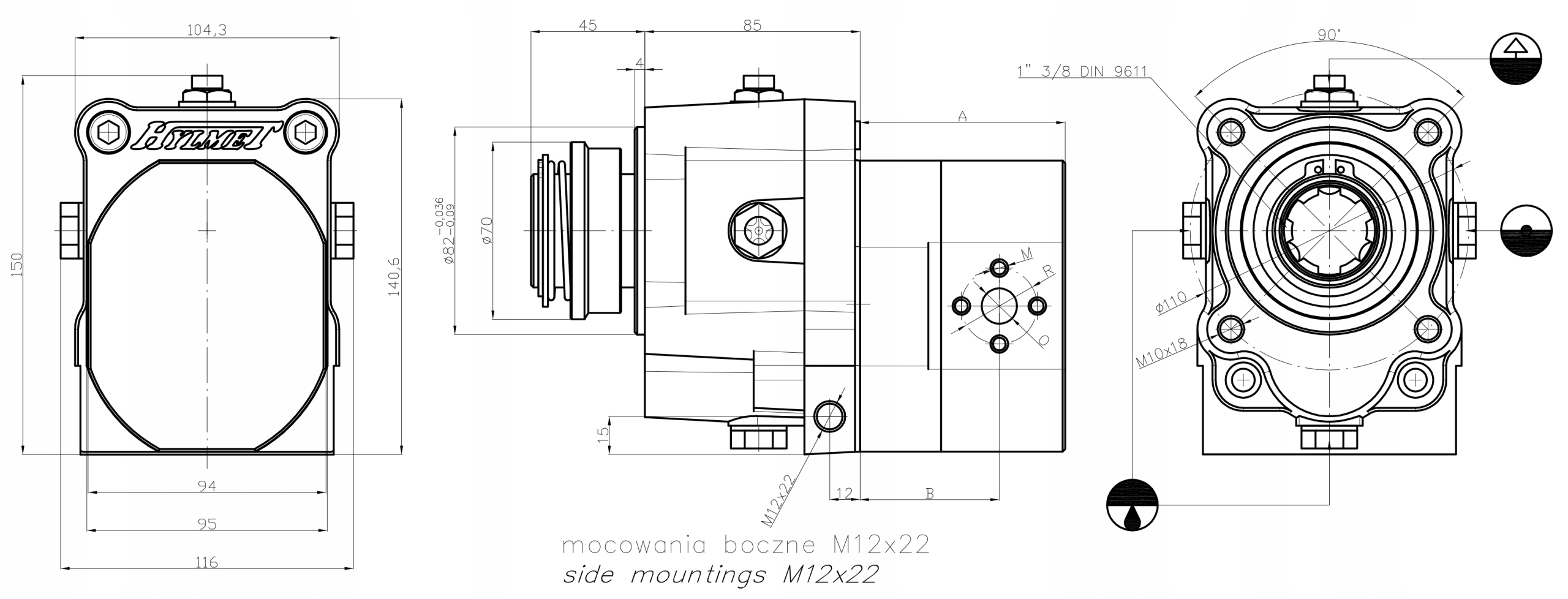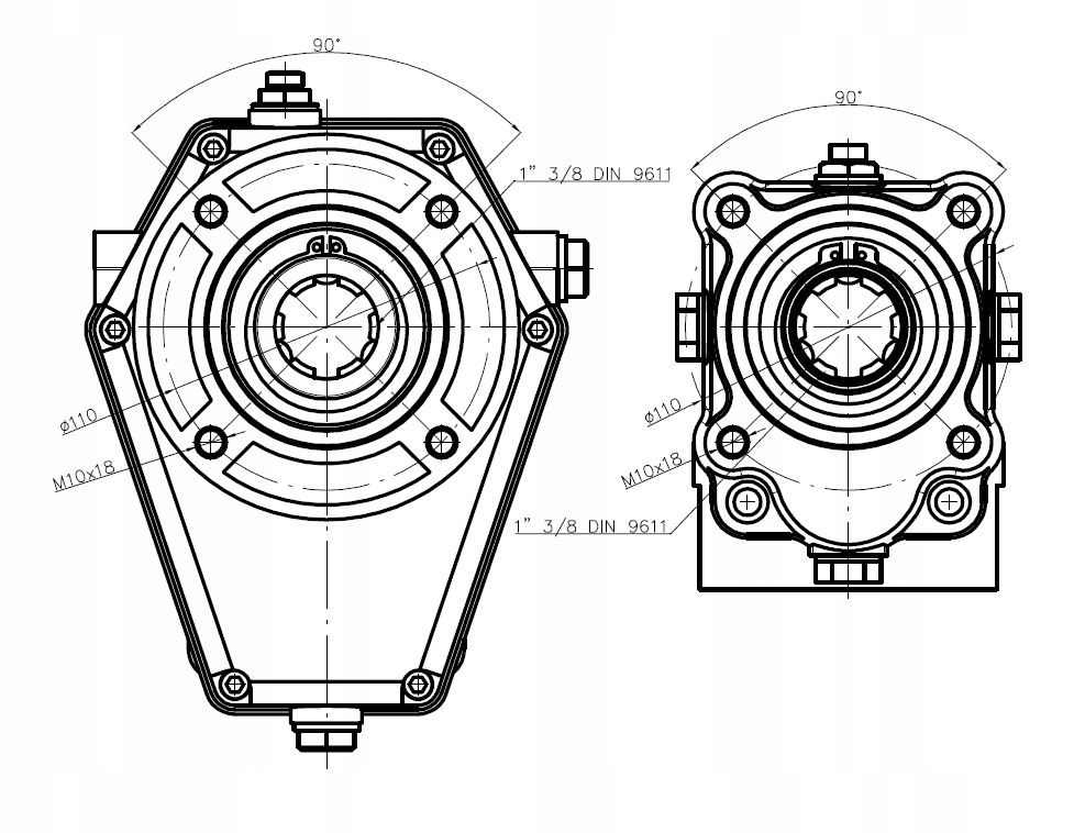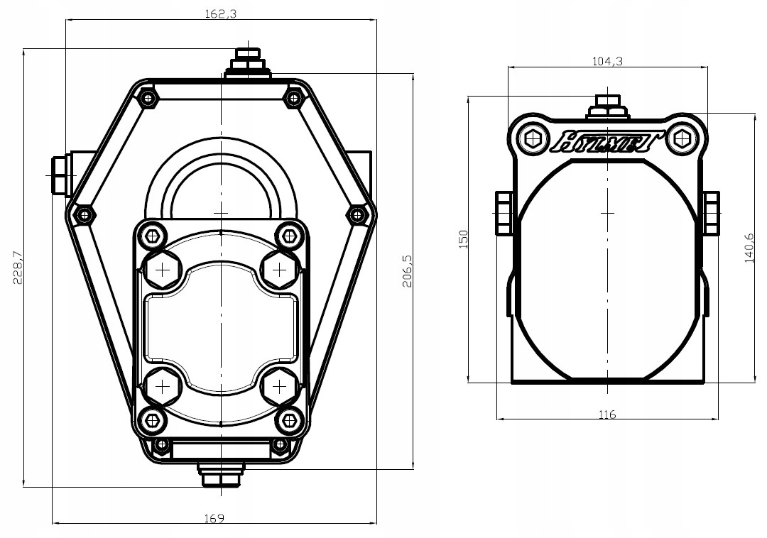 Мультипликатор имеет стандартные монтажные отверстия вокруг защелки (4xM10 - Ø110) идентичны тем, что имеются в импортных шестернях GR2.