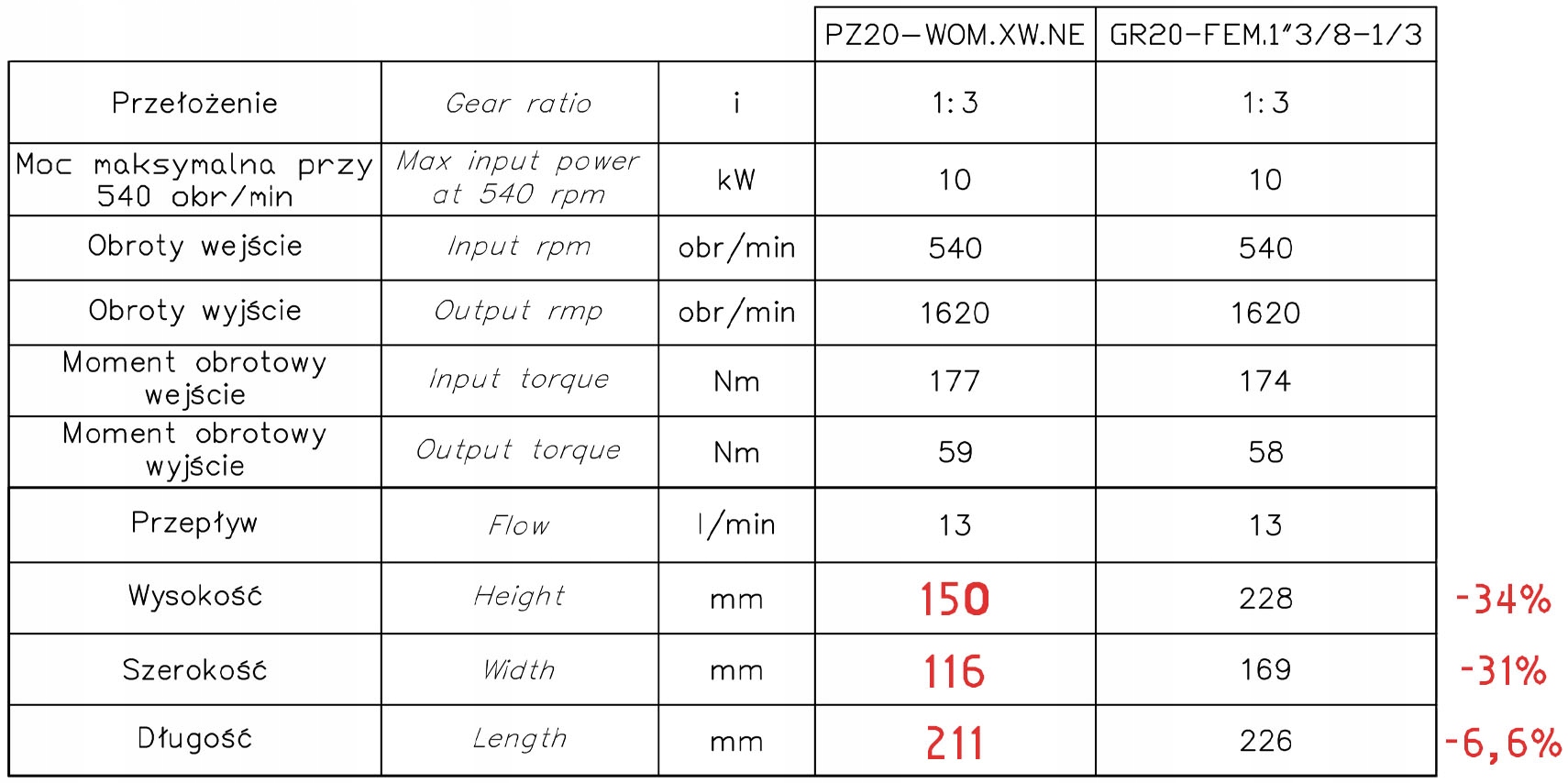 PZ20-PTO.XW.NE 1:3 + ПЗ20-ВОМ.НЕ-8