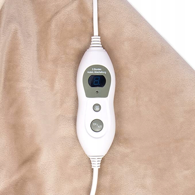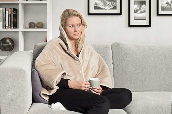 Накидка Videlle Heat бежевого и коричневого цвета с подогревом для спины, шеи и плеч, с автоматическим отключением и возможностью машинной стирки
