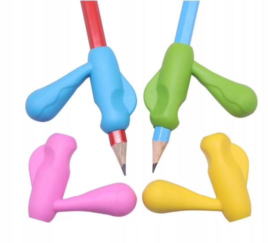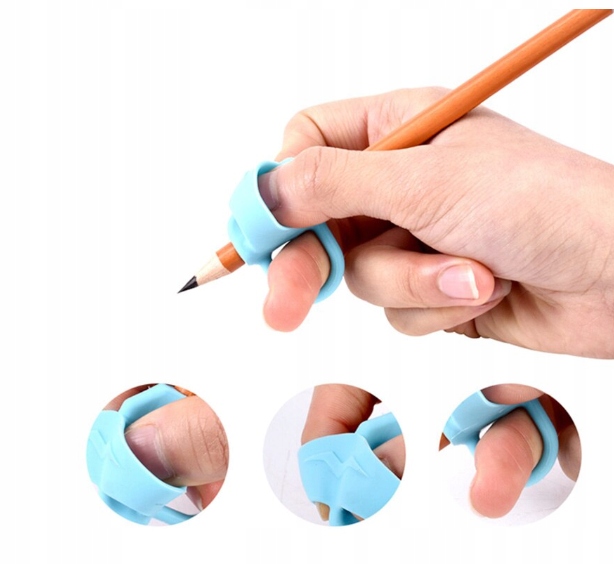 Форма накладки используется для исправления неправильных привычек держать канцелярские принадлежности в руке ребенка.