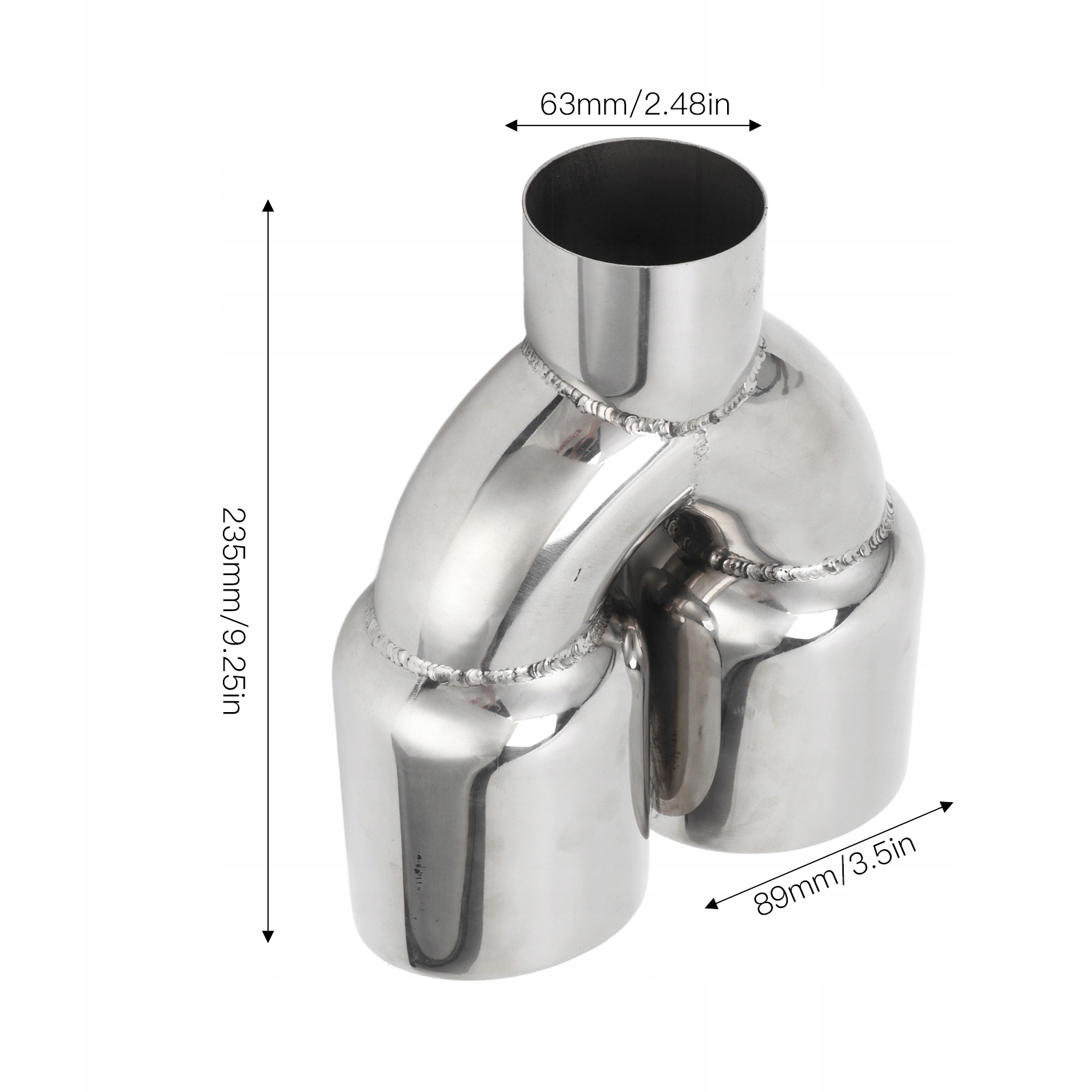 Двойной автомобильный выхлопной наконечник 63x89 мм из нержавеющей стали с серебряной сваркой на универсальной выхлопной трубе Y-образной формы для автомобилей