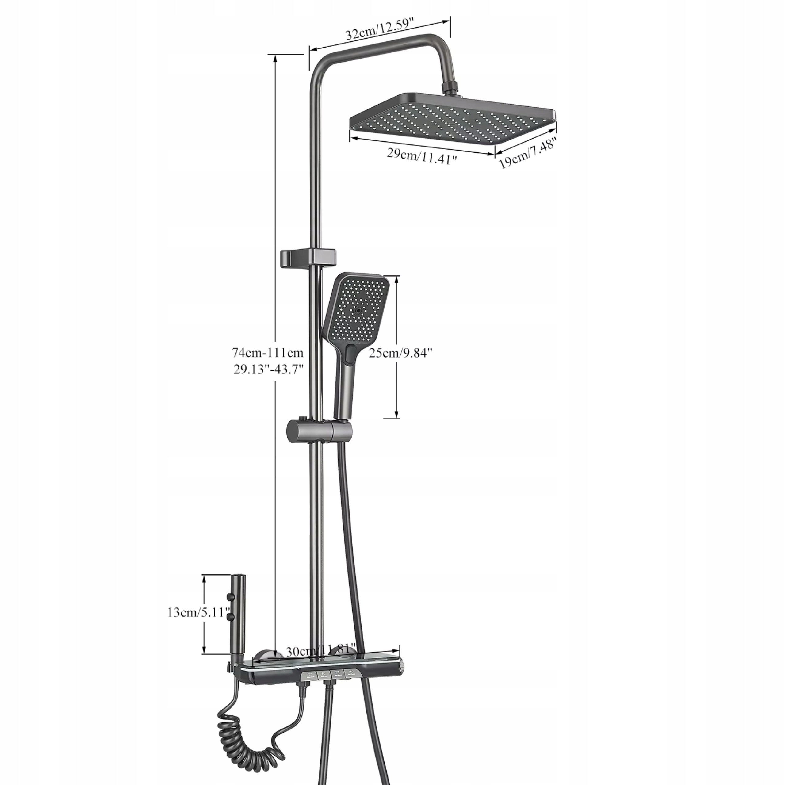 Набор для поверхностного душа, термостат для тропического душа, матовая черная ГРАФИТОВАЯ панель