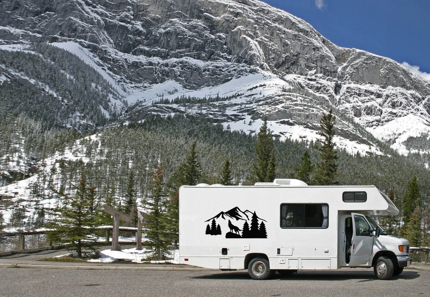 Наклейка АВТО гори ВОВК ліс КЕМПЕР 100см