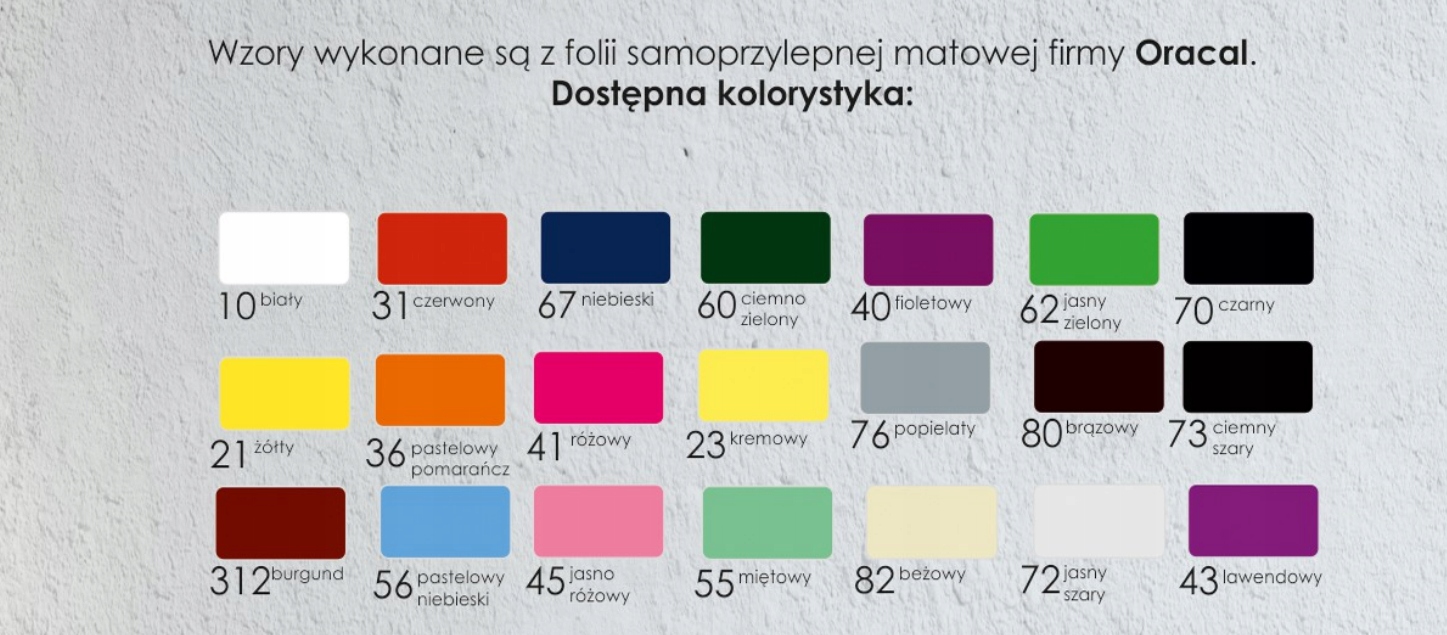 Цвет наклейки необходимо выбрать из палитры ниже. Возможно изготовление внешней наклейки или наклейки в зеркальном отражении.
