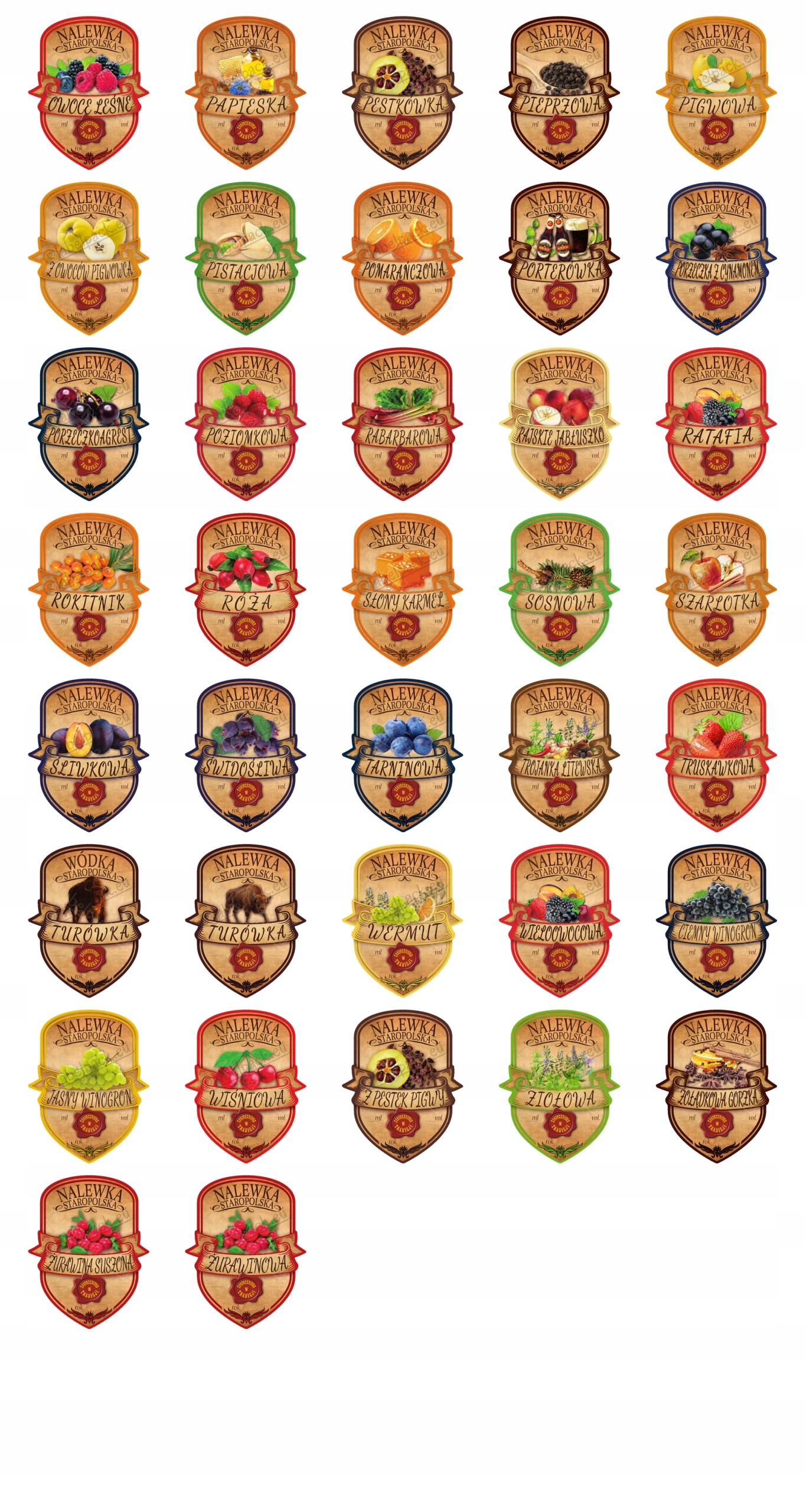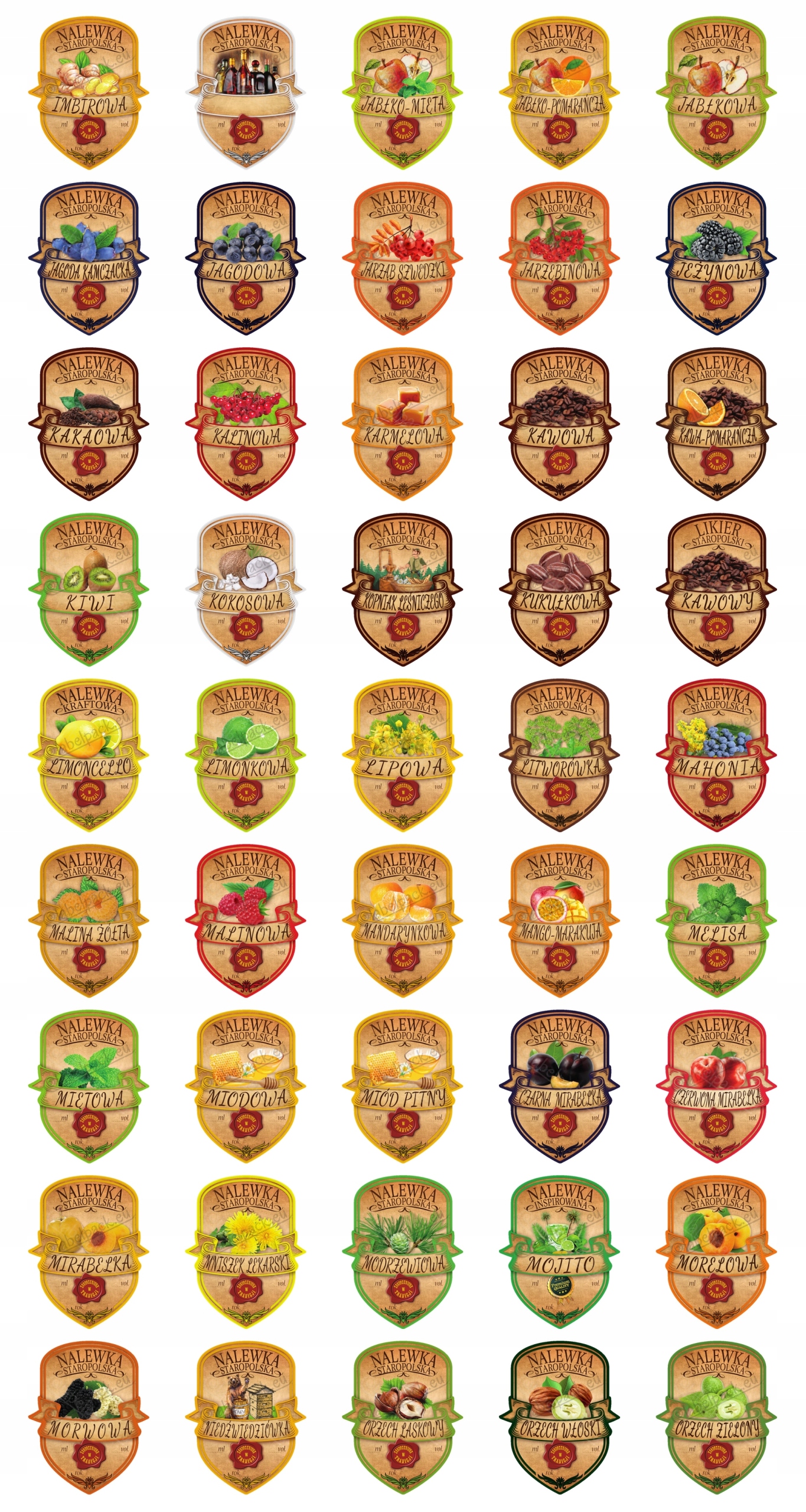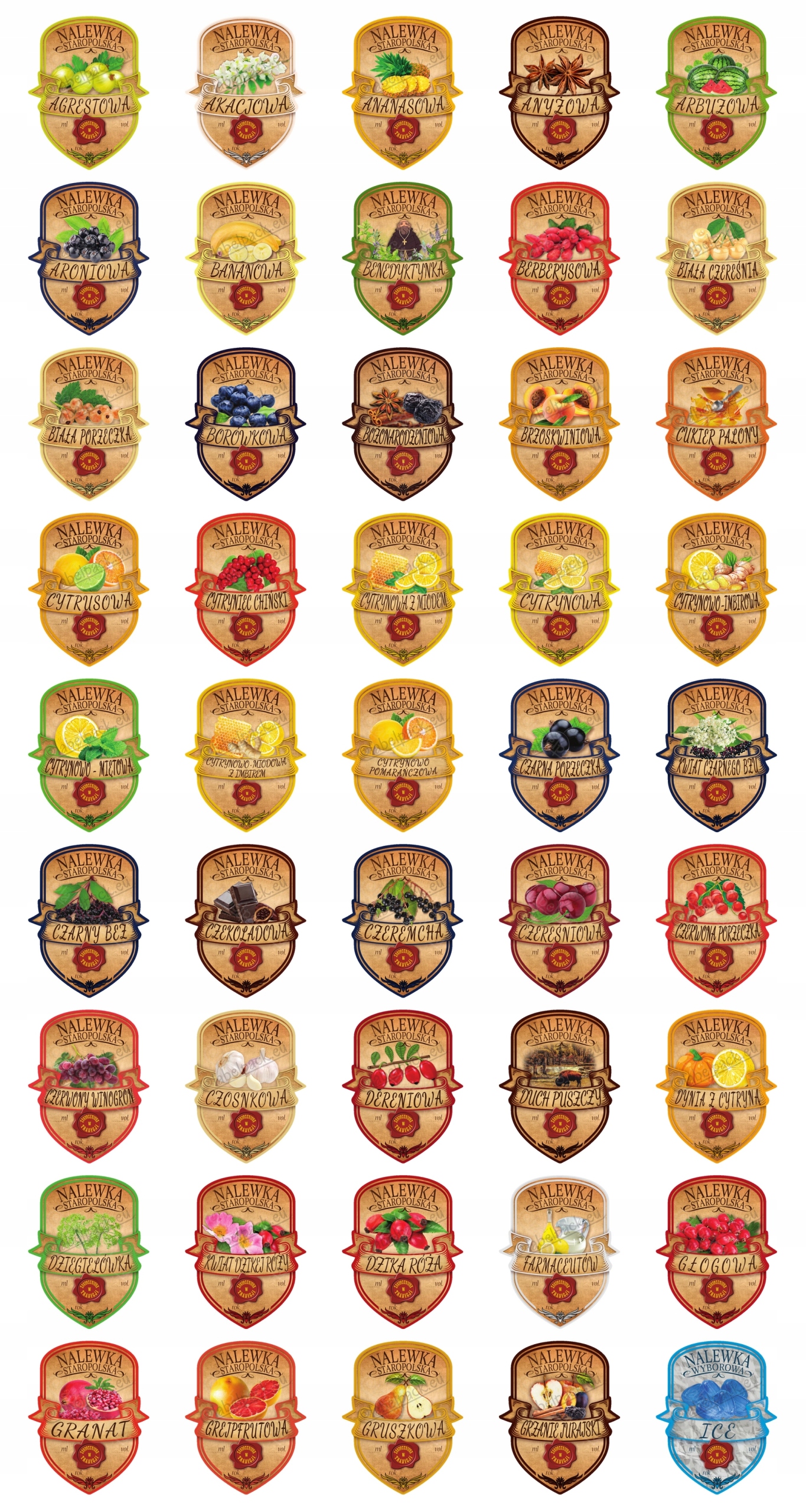 Этикетки имеют размеры 60 x 76 мм и предназначены для бутылок емкостью 200 мл, но подходят как для бутылок емкостью 100, так и для 500 мл.