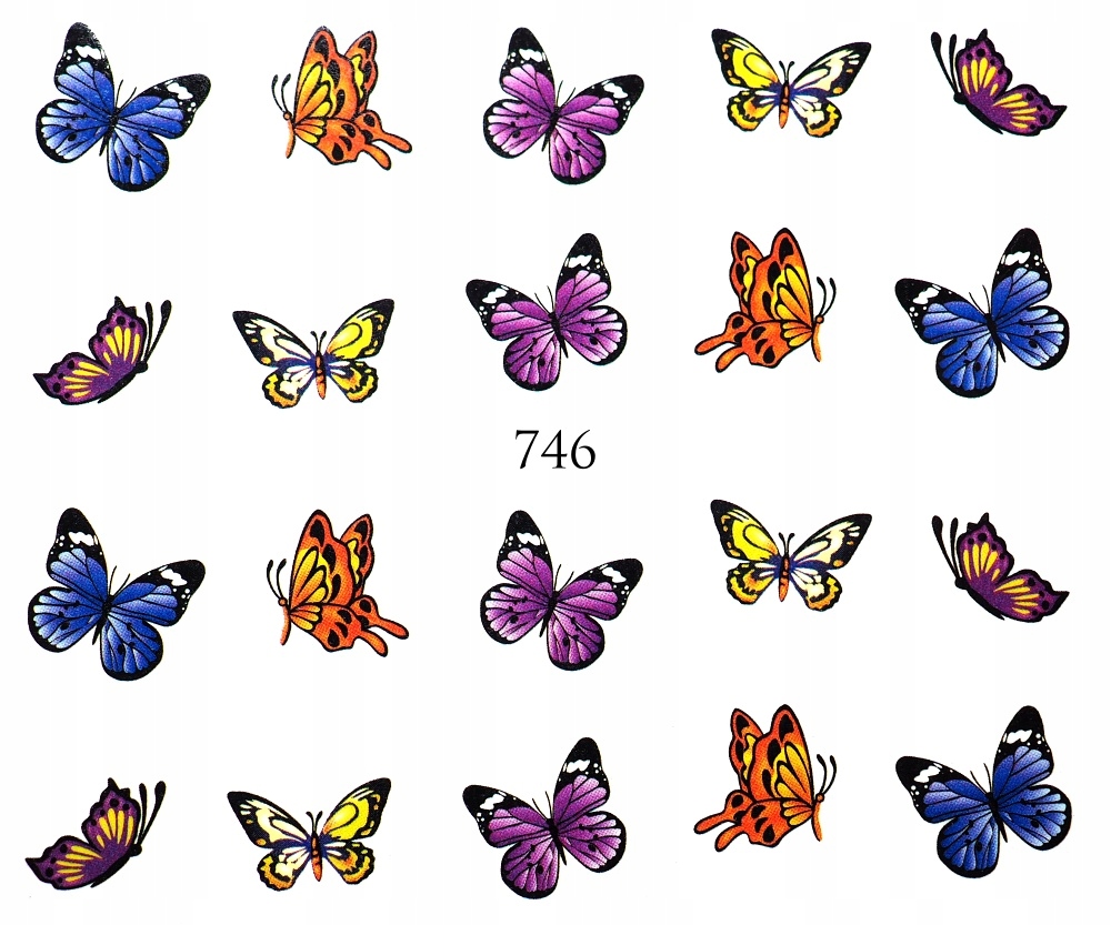 Наклейки с водой для ногтей, украшения для ногтей-бабочки, бабочка-746