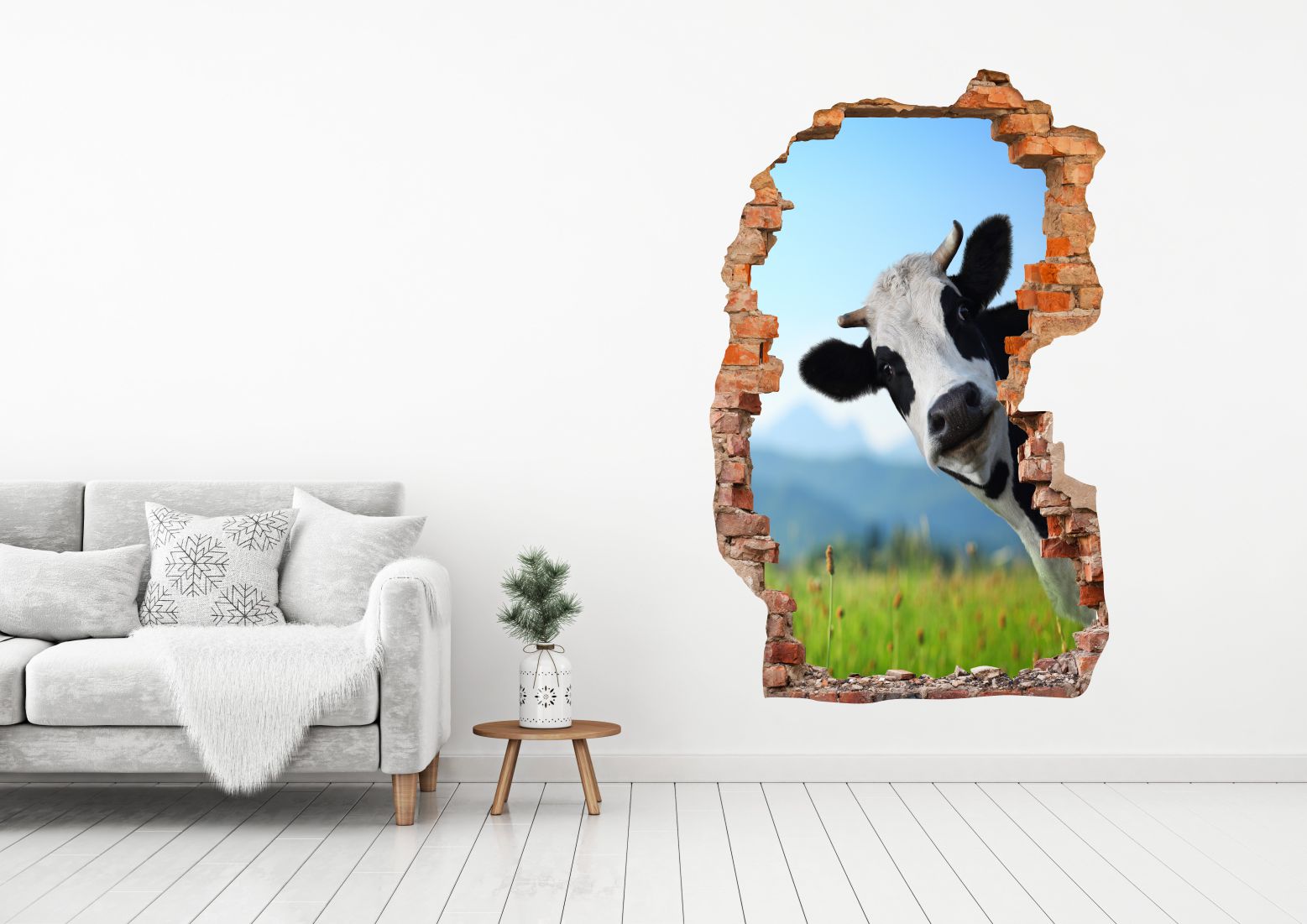 Наклейки на стіну 3d Hole 588 Cow
