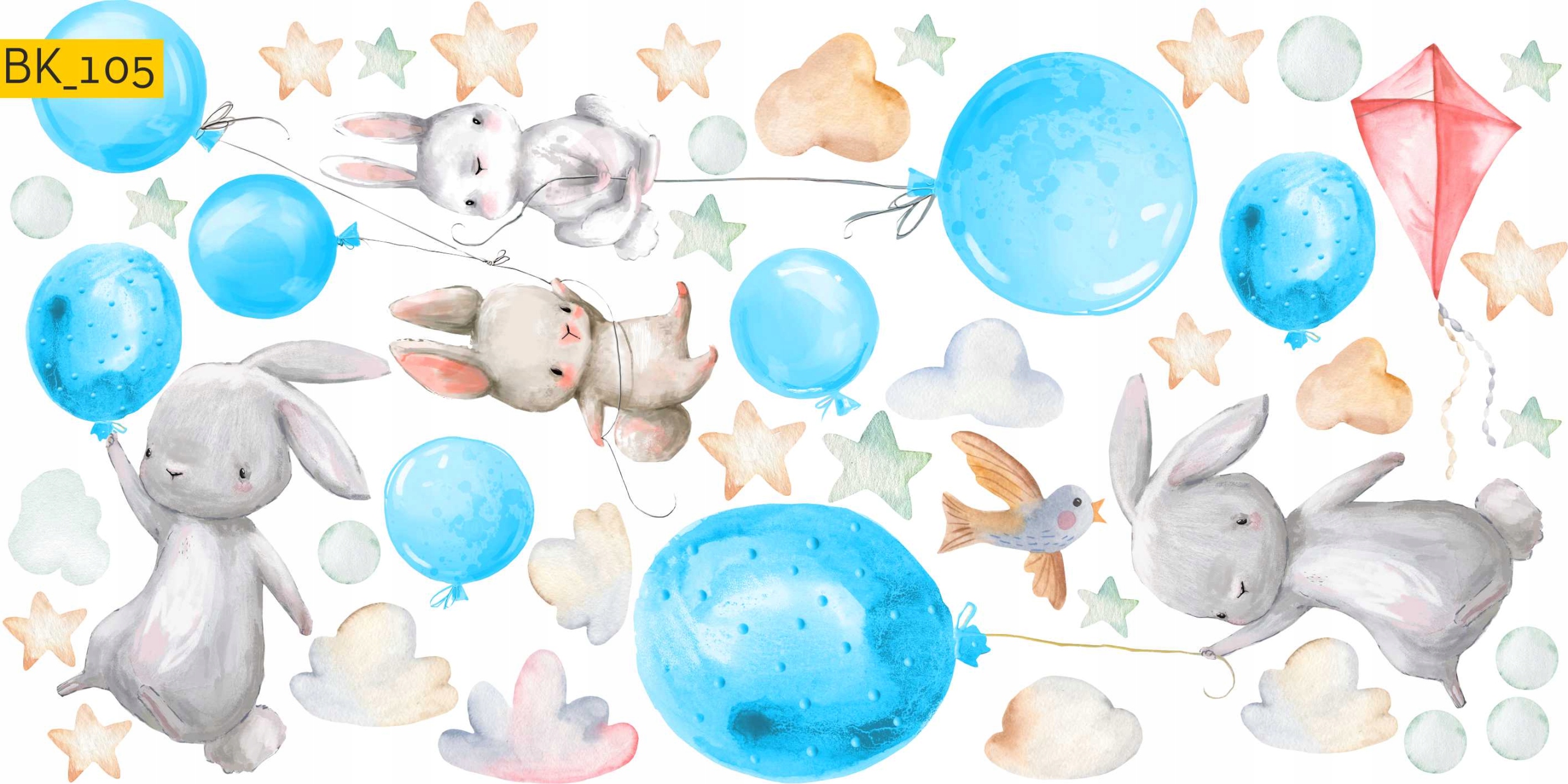 Наклейки на стіну Зайчики повітряні кульки дитячі сині