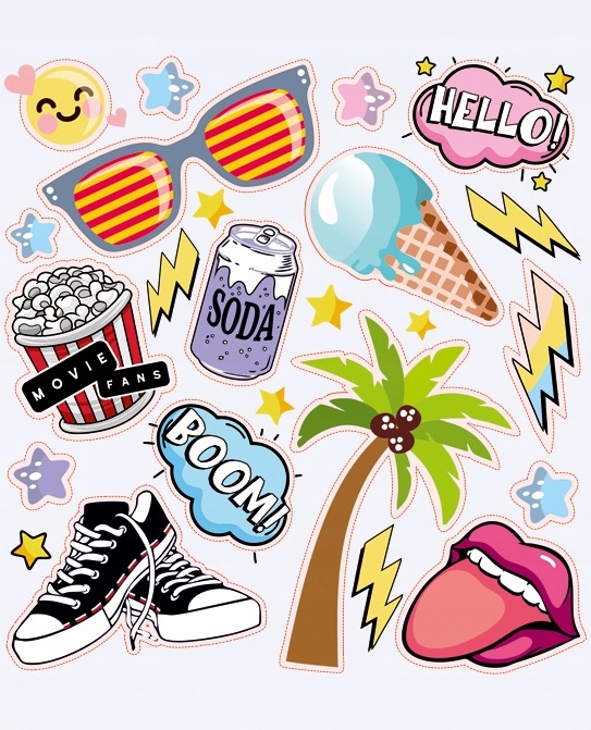 Выходные, то есть те два дня, которых большинство из нас с нетерпением ждут (если только в этот день нам не придется идти на работу или в школу). Это время, когда мы можем встретиться с друзьями и сделать то, что не можем себе позволить в течение недели. Мы также предлагаем термотрансферы, которые идеально подойдут для субботней поездки в кино или на пляж. Солнцезащитные очки, мороженое, попкорн и пальма — это лишь некоторые из многих моделей, представленных на этом листе. Яркие цвета и множество деталей интересно украсят одежду ваших детей.