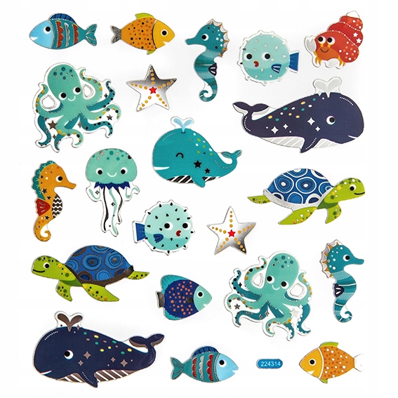 подводные наклейки 21 шт. Dalprint -это уникальный набор пластиковых наклеек, которые приведут вас в сказочный мир подводных животных. В пакете вы найдете мотивы моря, черепах, крабов, осьминог и медузы . Также будут киты и красочная рыба , которые добавят очарование к любому расположению.