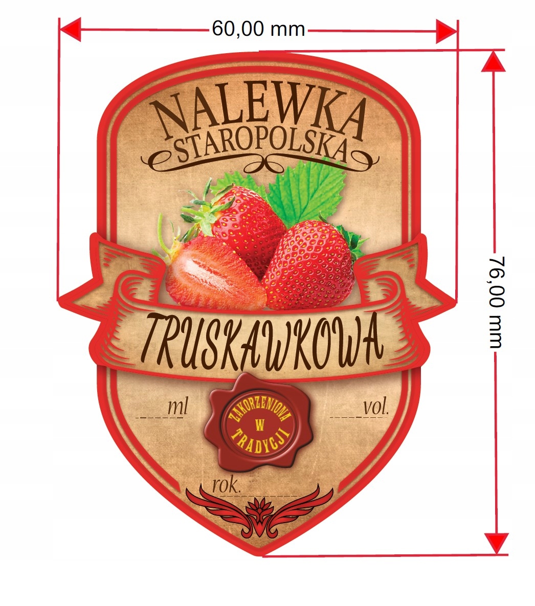 Этикетки имеют размеры 60 x 76 мм и предназначены для бутылок емкостью 200 мл, но подходят как для бутылок емкостью 100, так и для 500 мл.