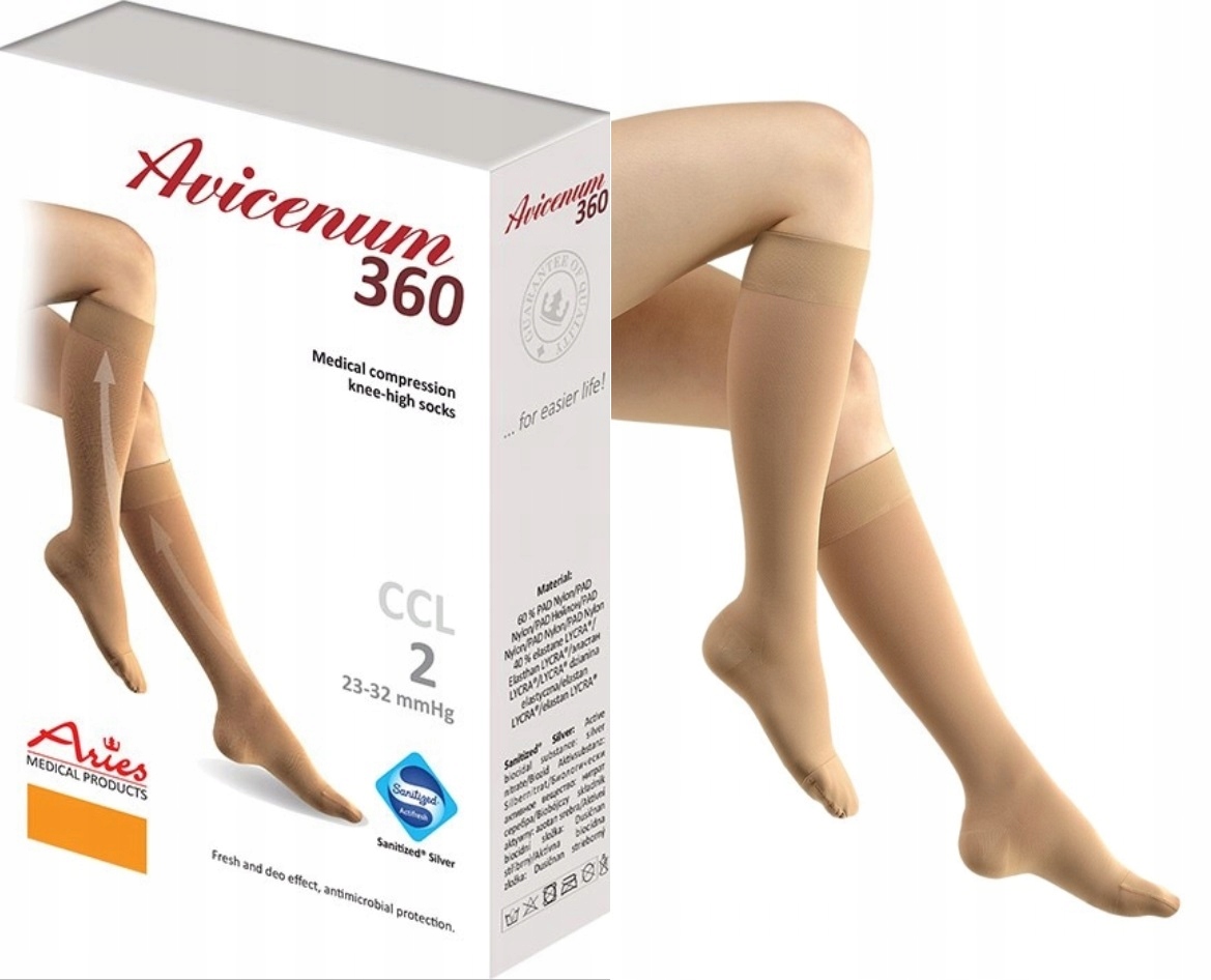 НАКОЛІННИКИ ARIES AVICENUM 360 CCL2 PRESSURE ПРИ ВАРИКОЗНОМУ РОЗШИРЕННІ ВЕН 2 ступеня S ДОВГІ
