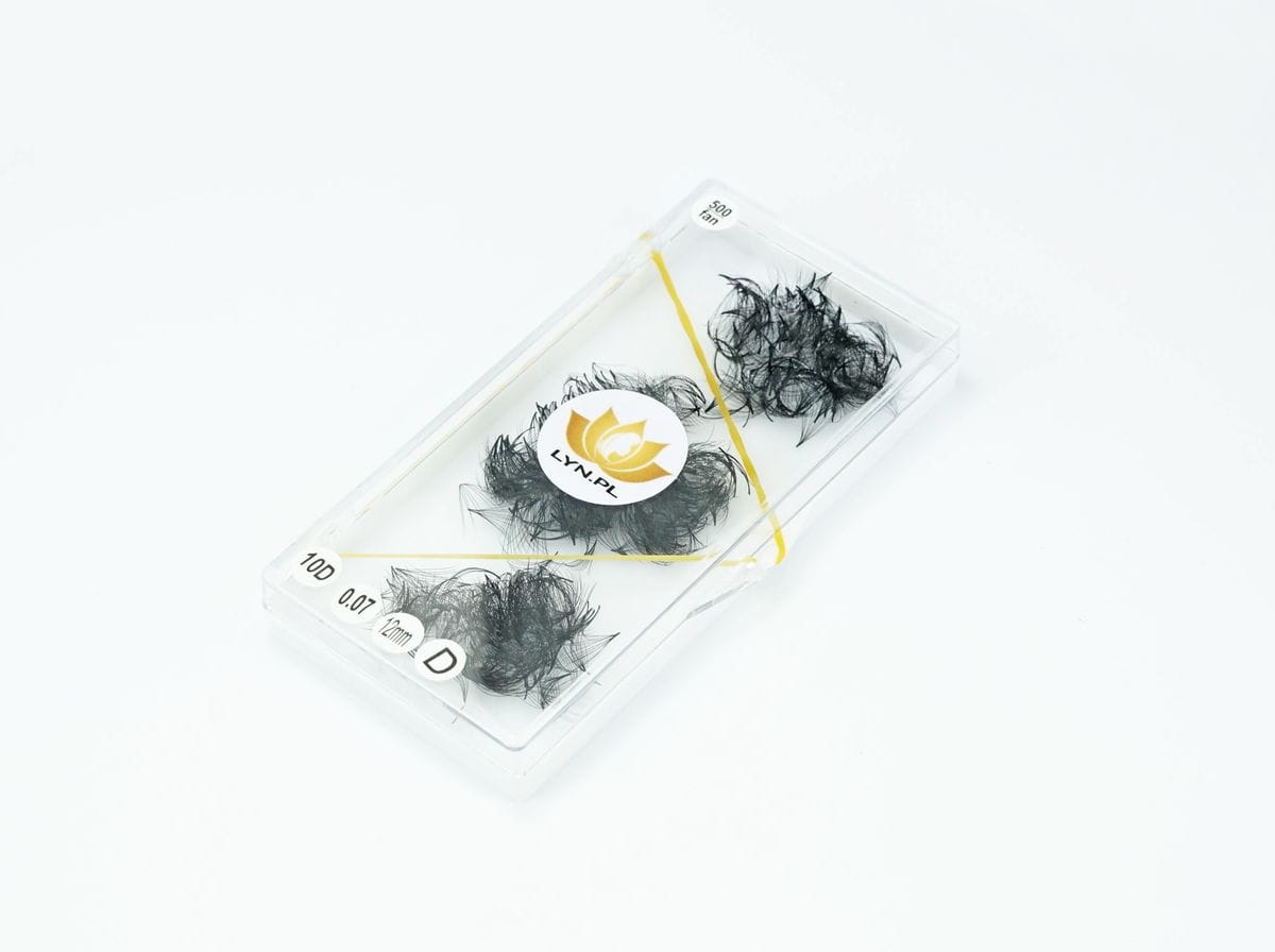 Глаза в виде вееров, состоящих из 10 отдельных ресниц. Идеально подходит для ускорения процедуры наращивания ресниц.