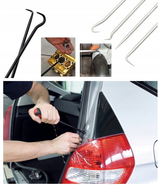 - Крючки и шампуры идеально подходят для снятия/подъема стопорных колец, уплотнительных колец, симерингов, шплинтов и т. д.