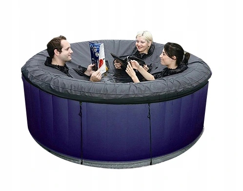 Крышка для надувного бассейна диаметром 1,80 см. Он сохраняет тепло и работает как сауна. В комплект входит дополнительный изоляционный коврик для бассейна, к которому крепится покрытие. В чехле имеются отверстия на молнии для 3-х человек, после закрытия остается место для шеи и рук. На поверхности также имеется держатель для полотенца или напитков.