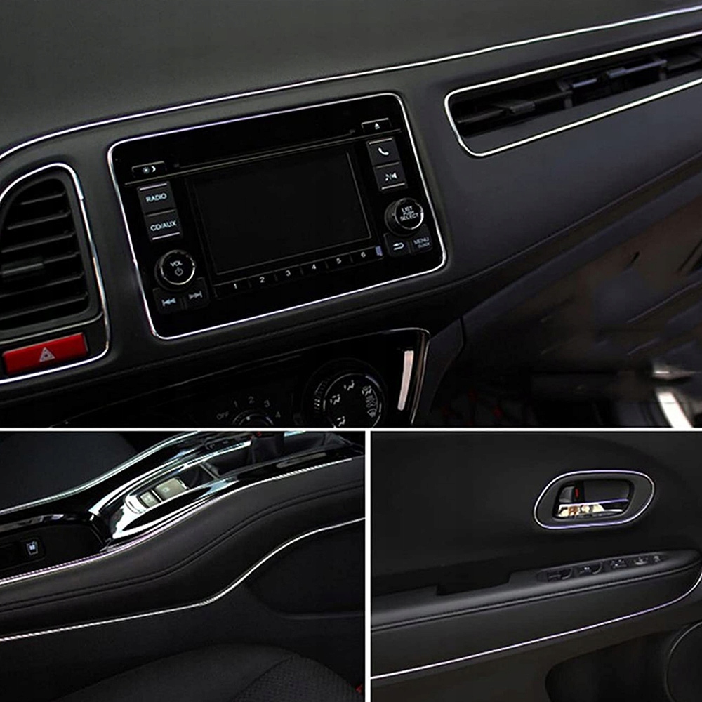 5 -метровая полоса длиной изготовлена из гибкого материала. Лента можно разрезать до желаемого измерения ножницами или ножом. Он подходит для всех пробелов внутри автомобиля, таких как двери, вокруг радио, коробки передач и приборной панели. На изгибах разрезать полосу на черном материале.