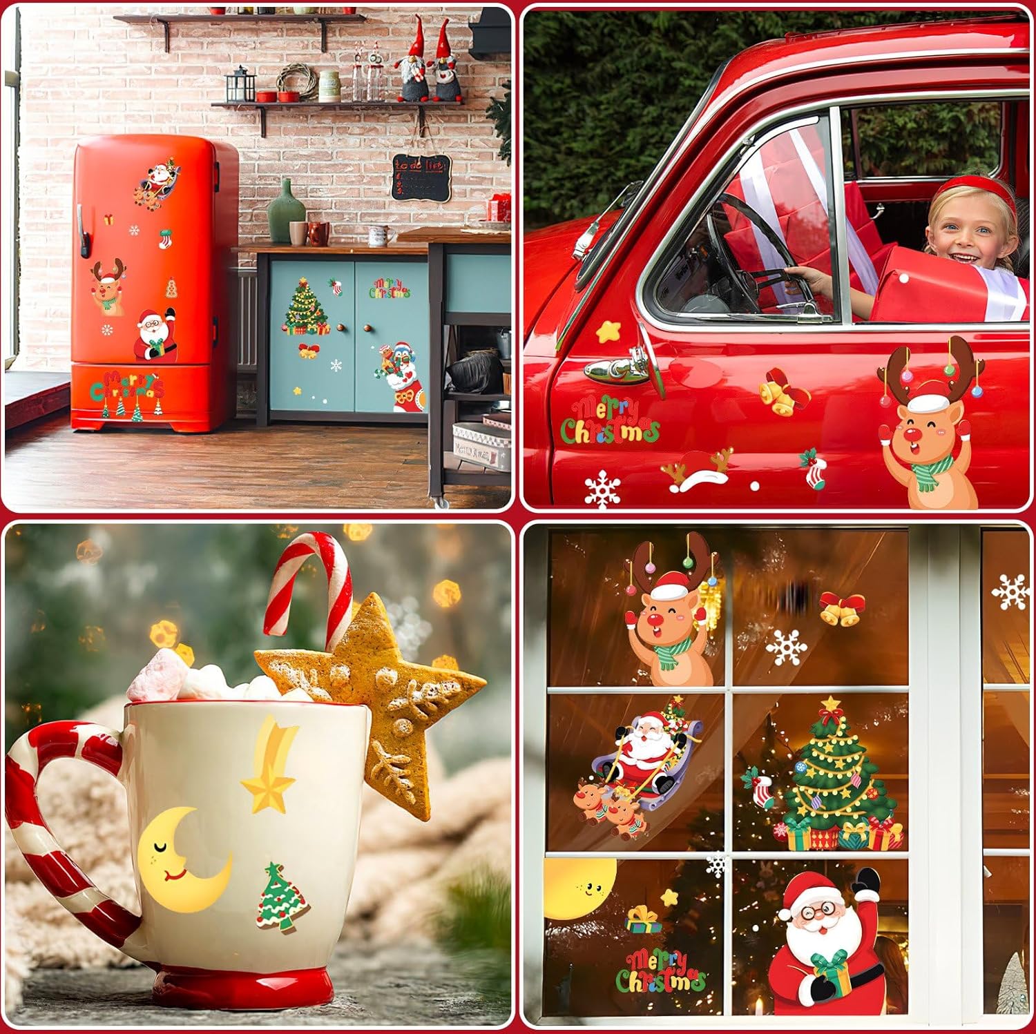 Набор наклеек на окно – 6 листов, 246 двусторонних рисунков + аксессуары | Рождественские статические наклейки из ПВХ
