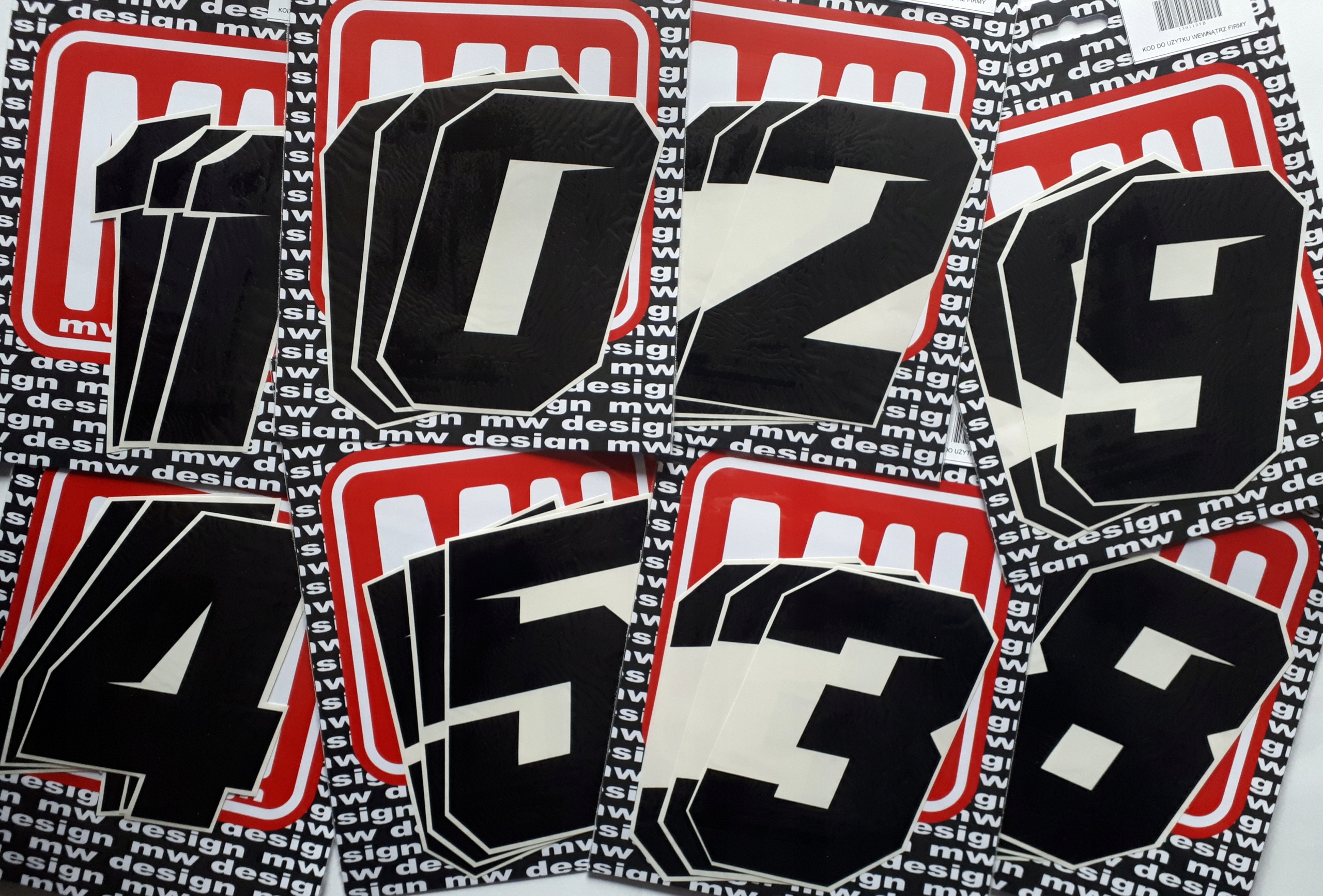 Наклейки доступны в черно-белом, диагональном и прямом цветах.
