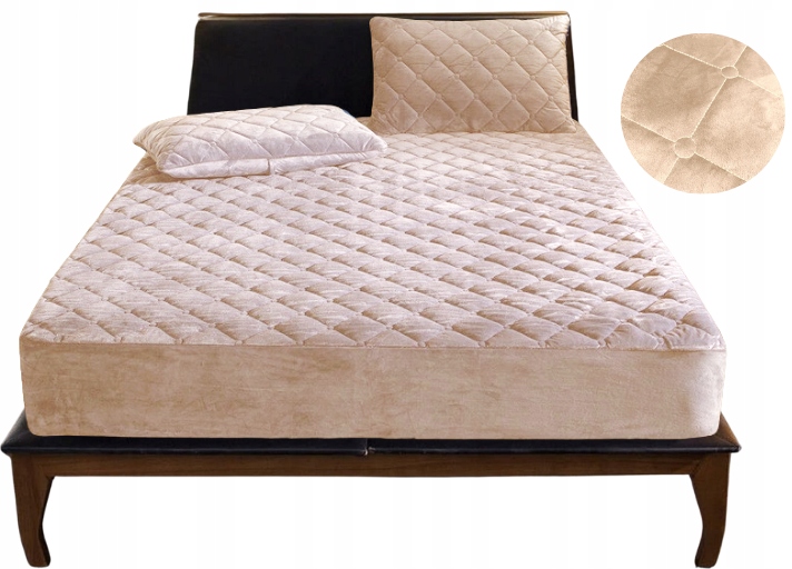 ЧЕХОЛ НАМАТРАС, СТЕГАНЫЙ ВЕЛЮР, ВОДОНЕПРОНИЦАЕМЫЙ ПЛЮШ 90 x 200 x 30 СМ БЕЖЕВЫЙ