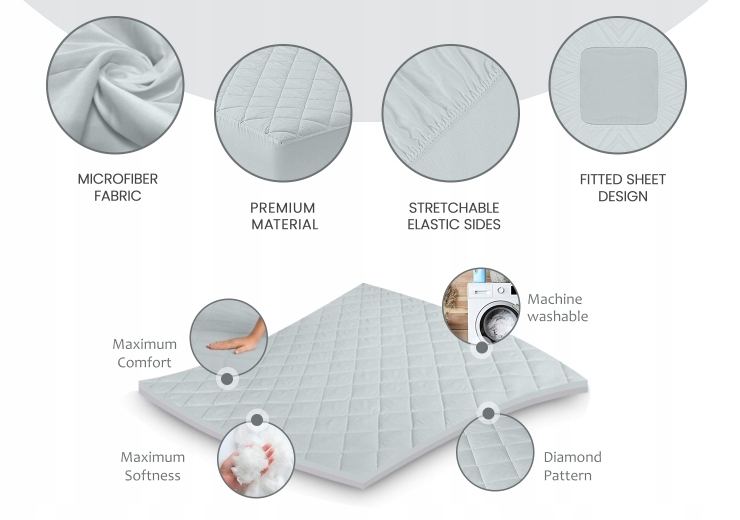 НАМАТРАС СТЕГАНЫЙ, ГИБКИЙ, ВОДОНЕПРОНИЦАЕМЫЙ ЗАЩИТНИК 140X200X30