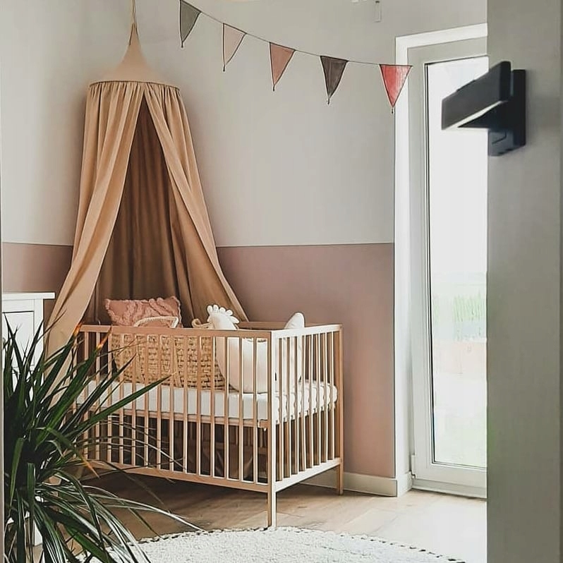 Балдахин – чрезвычайно эффектное украшение детской комнаты, места для игр и отдыха. Подвешенный над детской кроваткой, он приглушит шум и защитит от лишнего света, а в дальнейшем послужит зоной игры и отдыха в комнате дошкольника. Идеально подходит для небольшой комнаты, поскольку не занимает много места. Внутри верха можно прикрепить украшения и декоративные светильники.