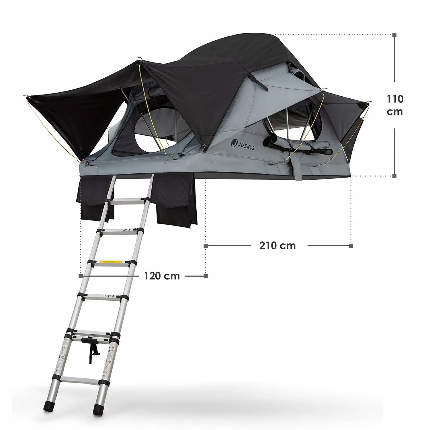 Палатка подходит для любого автомобиля с багажником на крыше и предлагает комфортное место для сна 2-3 человек. В сложенном виде он имеет аэродинамическую форму багажника на крышу, что облегчает управление и транспортировку.