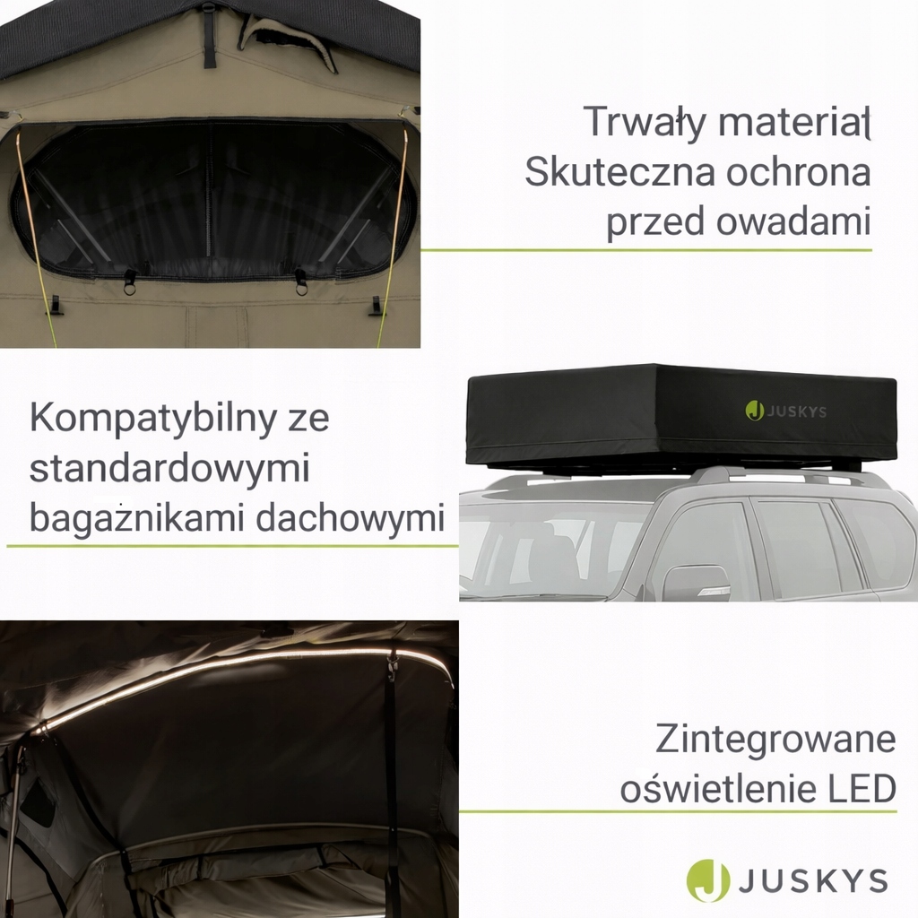 Откройте для себя палатку на крыше Lago черного/хаки — идеальное решение для людей, которые ценят свободу передвижения, комфорт сна и независимость от отелей. Спите там, где вас ведет дорога – на пляже, в горах или в диком кемпинге.