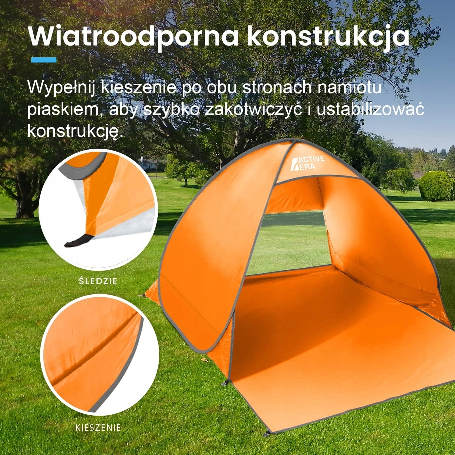 В палатке имеются карманы, наполненные песком, и набор из шести колышков, обеспечивающих устойчивость конструкции и безопасность пользователей. p>