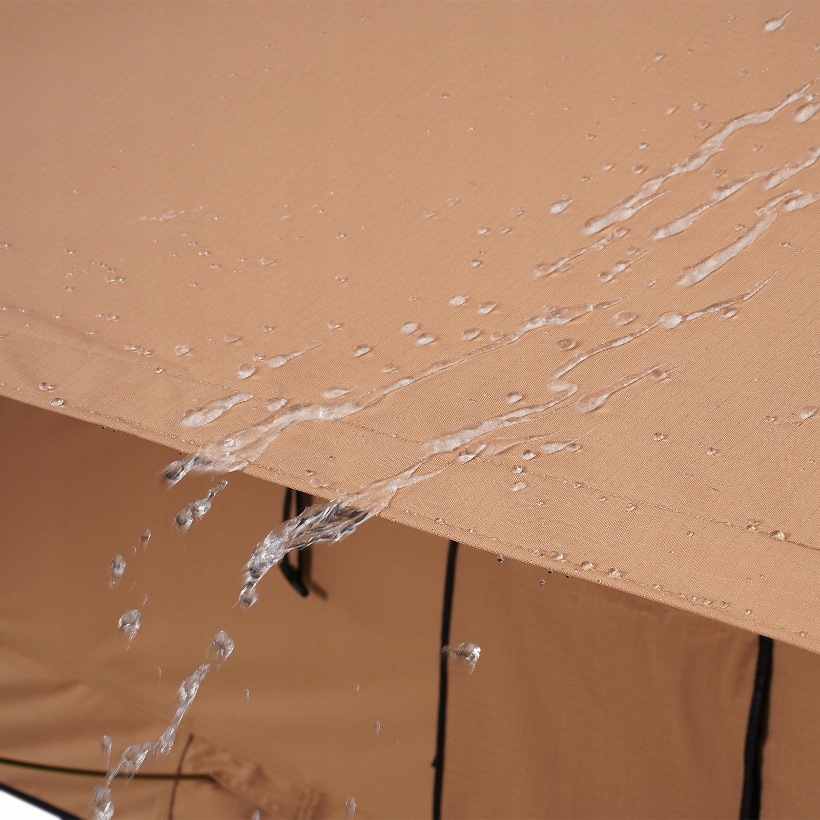 Водонепроницаемый и устойчивый к ультрафиолетовому излучению: дождевик изготовлен из ткани Oxford 420D с водонепроницаемостью 2 м. Основной корпус изготовлен из ткани высокой плотности полиэстер-хлопок, водонепроницаемой до 1,5 м и с полиуретановым покрытием, обеспечивающим защиту от ультрафиолета и изоляцию. Обеспечивает максимальную долговечность и защиту в различных погодных условиях. Примечание. Не используйте в экстремальных погодных условиях.