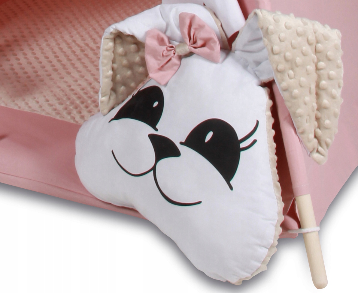 В комплект входят 3 подушки: зайчик, облачко и луна. Мягкие подушки изготовлены из хлопковой ткани в сочетании с норкой. Наполнитель представляет собой мягкий противоаллергенный силиконовый шарик. Цвета соответствуют всему набору.