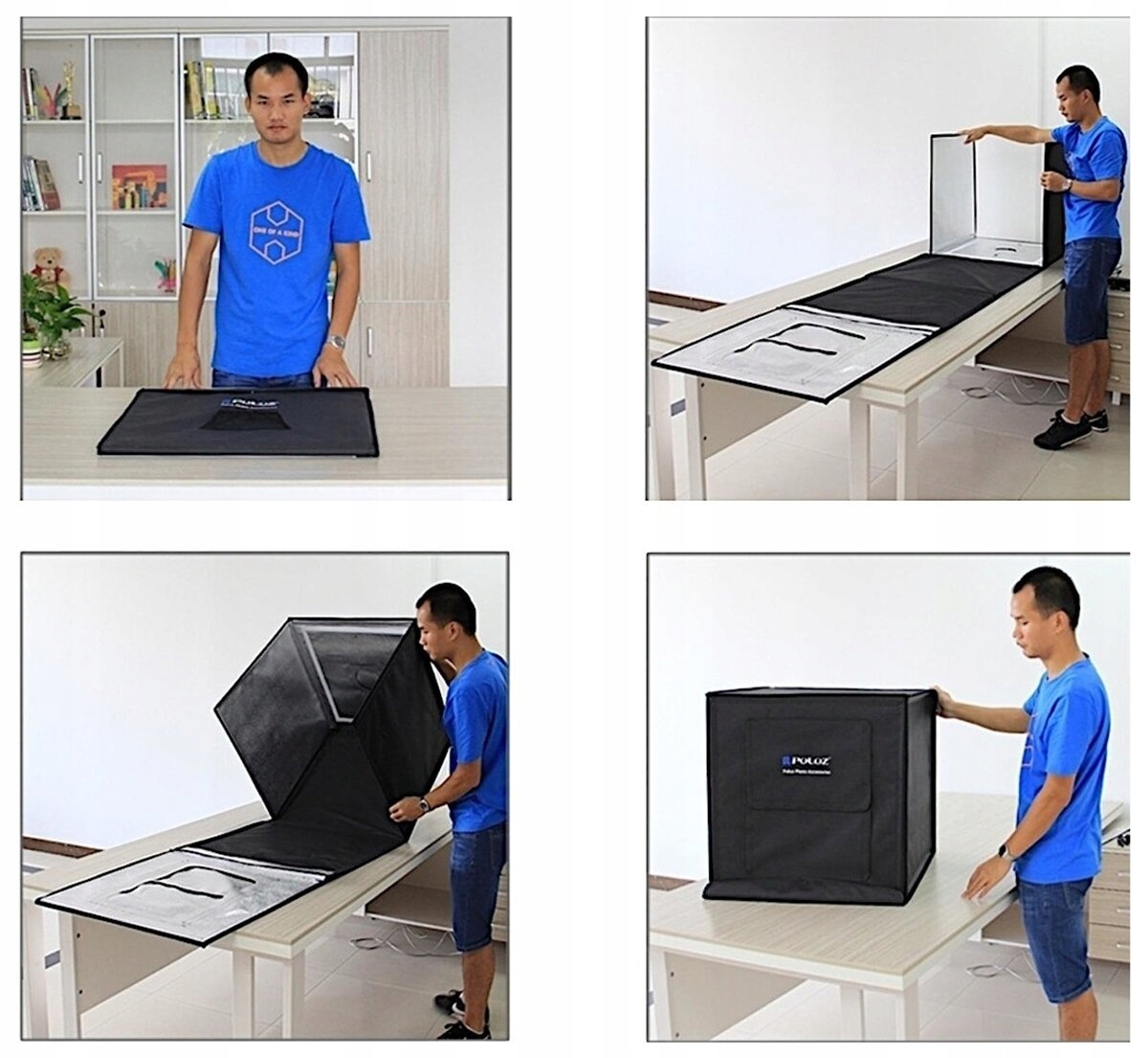 Shadeless палатка фотографическая от Puluz — это полнофункциональный набор, предназначенный для фотосъемки > продукт. Он позволяет делать бестеневые фотографии товаров для интернет-магазинов, каталогов, издательств книг и прессы, а также рекламных агентств.