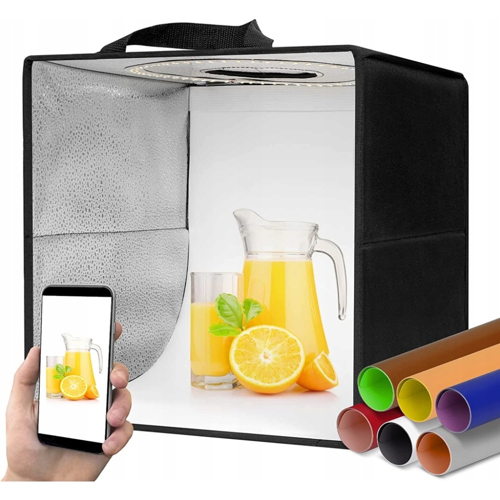 NAMIOT BEZCIENIOWY 25CM STUDIO DO FOTOGRAFII ZDJĘĆ LAMPY LED 6X TŁO PILOT
