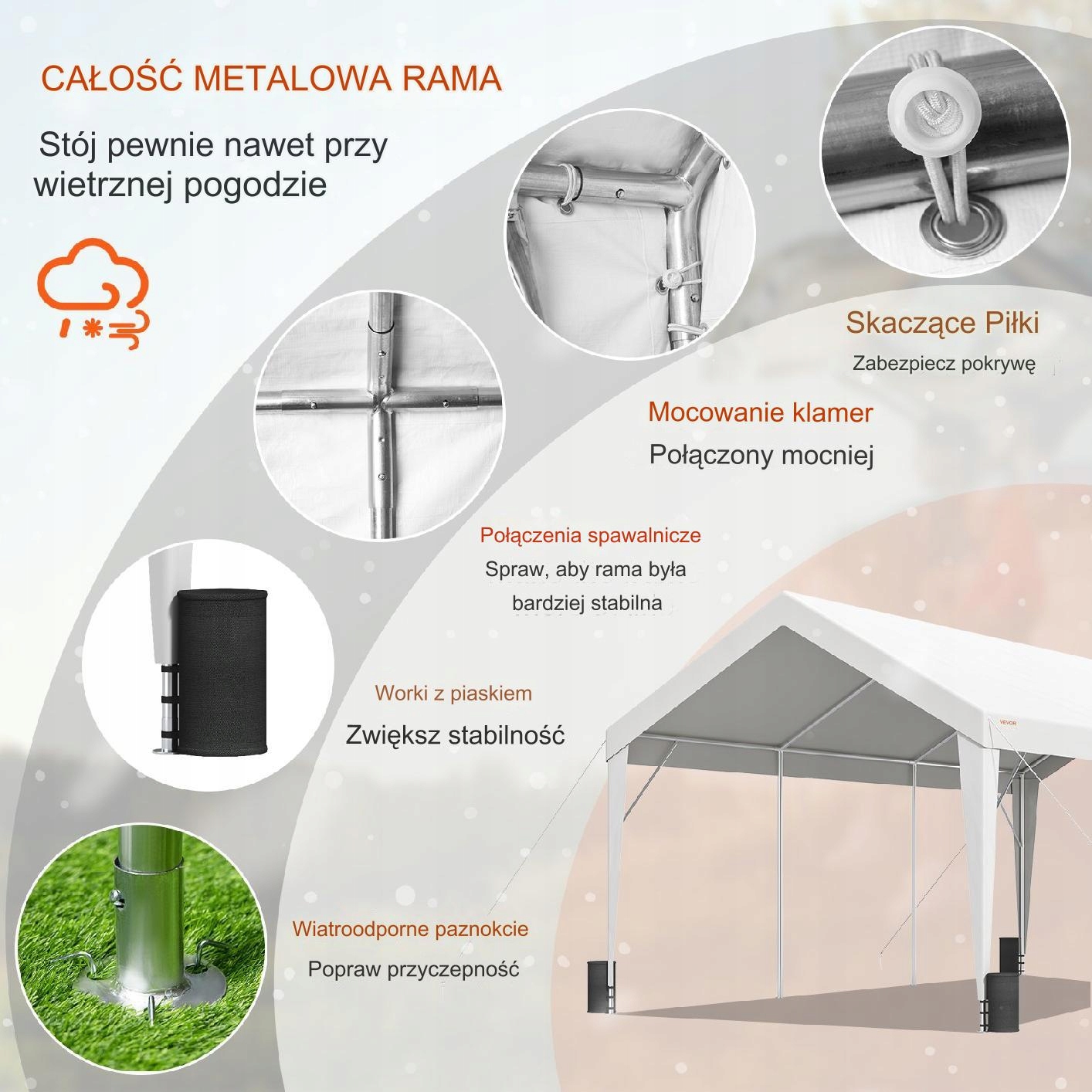 Гаражная палатка, построенная из 8 оцинкованных стальных труб толщиной 0,8 мм, имеет двойные стенки и уникальный дизайн, обеспечивающий дополнительную прочность. Порошковое покрытие защищает от ржавчины, коррозии, растрескивания и отслаивания, а дополнительные элементы жесткости конструкции минимизируют вибрации.